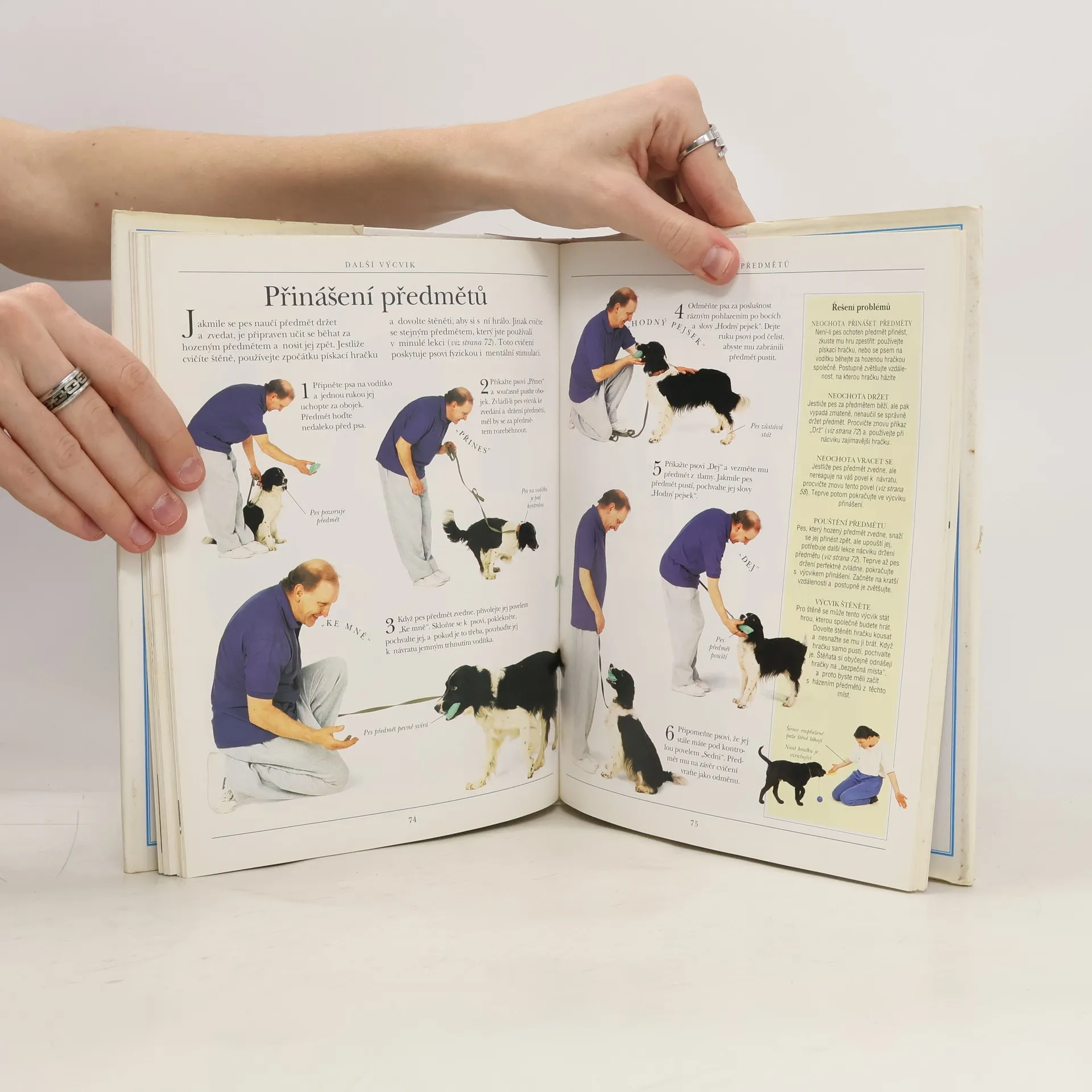 Barevná kniha o výchově a výcviku psů. Kompletní kniha o výchově a výcviku psů všech věkových kategorií: Psychika vašeho psa-Jak pes uvažuje, Rozdíly mezi plemeny, Typy osobností, Výcvik malého štěněte, Odměny a tresty, Dokonalé načasování, Vydávání povelů, ... a vše najednou. Výcvik štěněte-První domácí návyky, Základní vybavení, Navykání na klec, Výcvik v domě, Každodenní péče, Přivolání psa, Povely "Sedni" a "Lehni", Chůze bez vodítka, Chůze na vodítku, Vhodné hračky, Nové zkušenosti. Další výcvik-Ovládání a omezování psa, Povely "Sedni" a "Zůstaň", Povely "Ke mně" a "Sedni", Povel "Lehni", Povel "Lehni" a "Zůstaň", Odložení, Štěkání na povel, Práce tlapkami, Chůze u nohy, Držení předmětů, Přinášení předmětů, Psi a děti, Hry, Hry s jinými psy. Odstraňování zlozvyků-Pochopení a prevence, Odhadování povahy psa, Tahání na vodítku, Nerespektování povelu "Ke mně", Pronásledování vozidel, Pronásledování zvířat, Agresivita vůči psům, Agresivita vůči lidem, Kousání ze strachu, Hlídání, Rivalita mezi psy, Problémy se sexem, Problémy v autech, Nervozita, Nuda, Léčba nudy, Vyskakování, Vzrušené chování, Stravovací zlozvyky.... celý text
