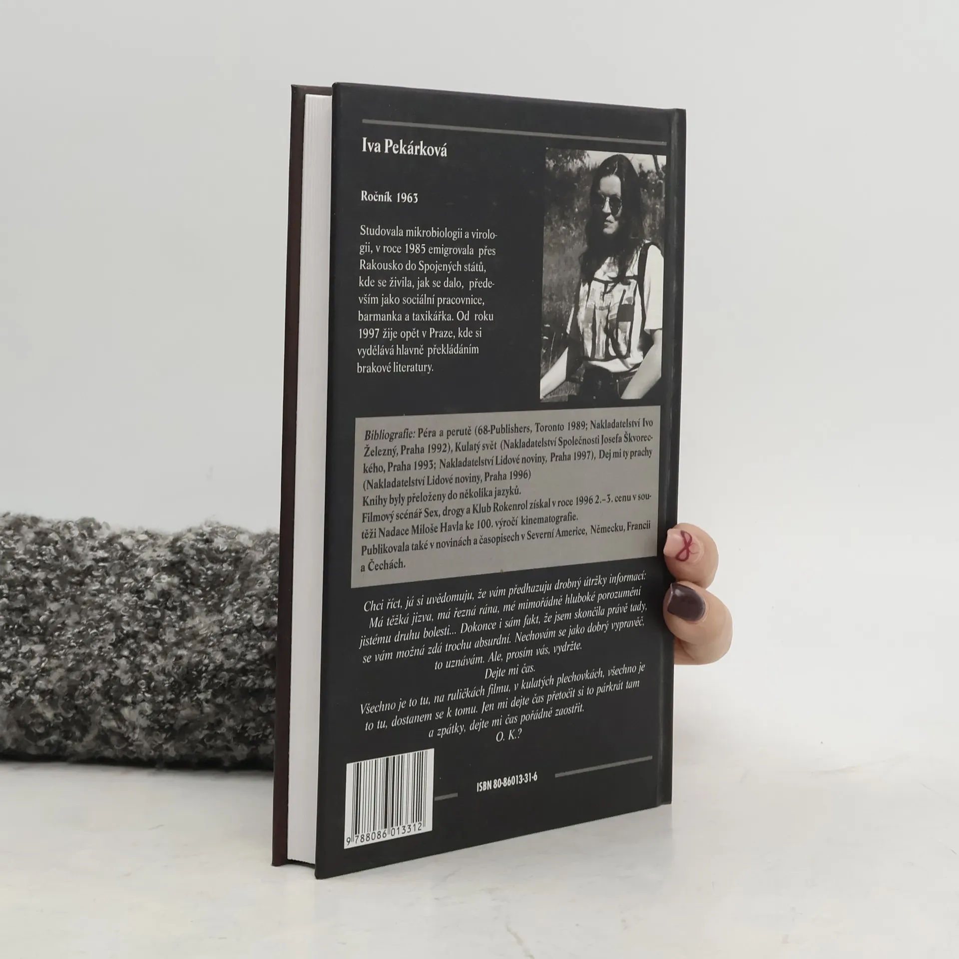 Je možné nosit na tváři důkaz přináležitosti v podobě ošklivé, rozšklebené jizvy? Lze se ukrývat za jizvu, kterou jsme dosud schovávali? Je možné milovat něco, co nás hyzdí? Knihu Ivy Pekárkové, zhuštěný příběh devatenáctileté Boženy, odehrávající se na třech kontinentech, lze číst jako napínavý thriller, jako detektivní román, jako mistrný průřez newyorskou společností druhé poloviny devadesátých let, anebo jako syrový, místy až drsný portrét zraněné a zranitelné lidské duše, která se přese všecko nevzdává. Neobvyklý námět a jazyk románu i humor hned v několika odstínech temné barvy nás často nechává na pochybách, zda čteme komiks, anebo antickou tragédii. Příběh tak spletitý a mnohotvárný, že je skoro nemožné, aby se přihodil jedinému člověku, nenápadně a přes jazykovou otevřenost trochu nesměle v sobě nese velké životní pravdy.