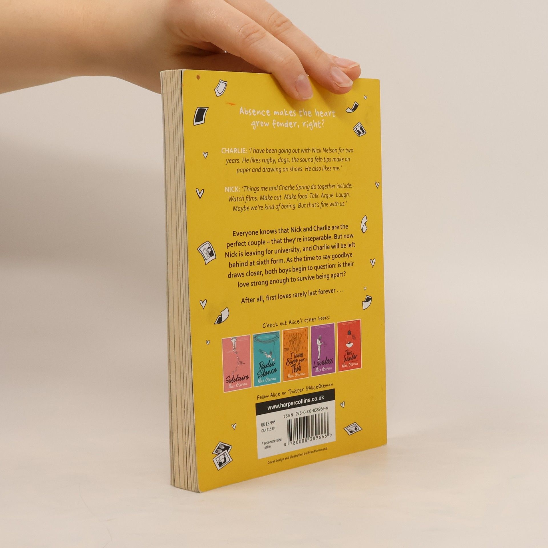 A SUNDAY TIMES TOP 5 CHILDREN'S BESTSELLER A short novella based on the beloved characters from Alice Oseman's acclaimed debut novel Solitaire and graphic novel series Heartstopper - now a major Netflix series. From the author of the 2021 YA Book Prize winning Loveless. Absence makes the heart grow fonder, right? CHARLIE: "I have been going out with Nick Nelson for two years. He likes rugby, Formula 1, dogs, the Marvel universe, the sound felt-tips make on paper, rain and drawing on shoes. He also likes me." NICK: "Things me and Charlie Spring do together include: Watch films. Sit in the same room on different laptops. Text each other from different rooms. Make out. Make food. Make drinks. Get drunk. Talk. Argue. Laugh. Maybe we're kind of boring. But that's fine with us." Everyone knows that Nick and Charlie are the perfect couple - that they're inseparable. But now Nick is leaving for university, and Charlie will be left behind at Sixth Form. Everyone's asking if they're staying together, which is a stupid question - they're 'Nick and Charlie' for God's sake! But as the time to say goodbye gets inevitably closer, both Nick and Charlie question whether their love is strong enough to survive being apart. Or are they delaying the inevitable? Because everyone knows that first loves rarely last forever...
