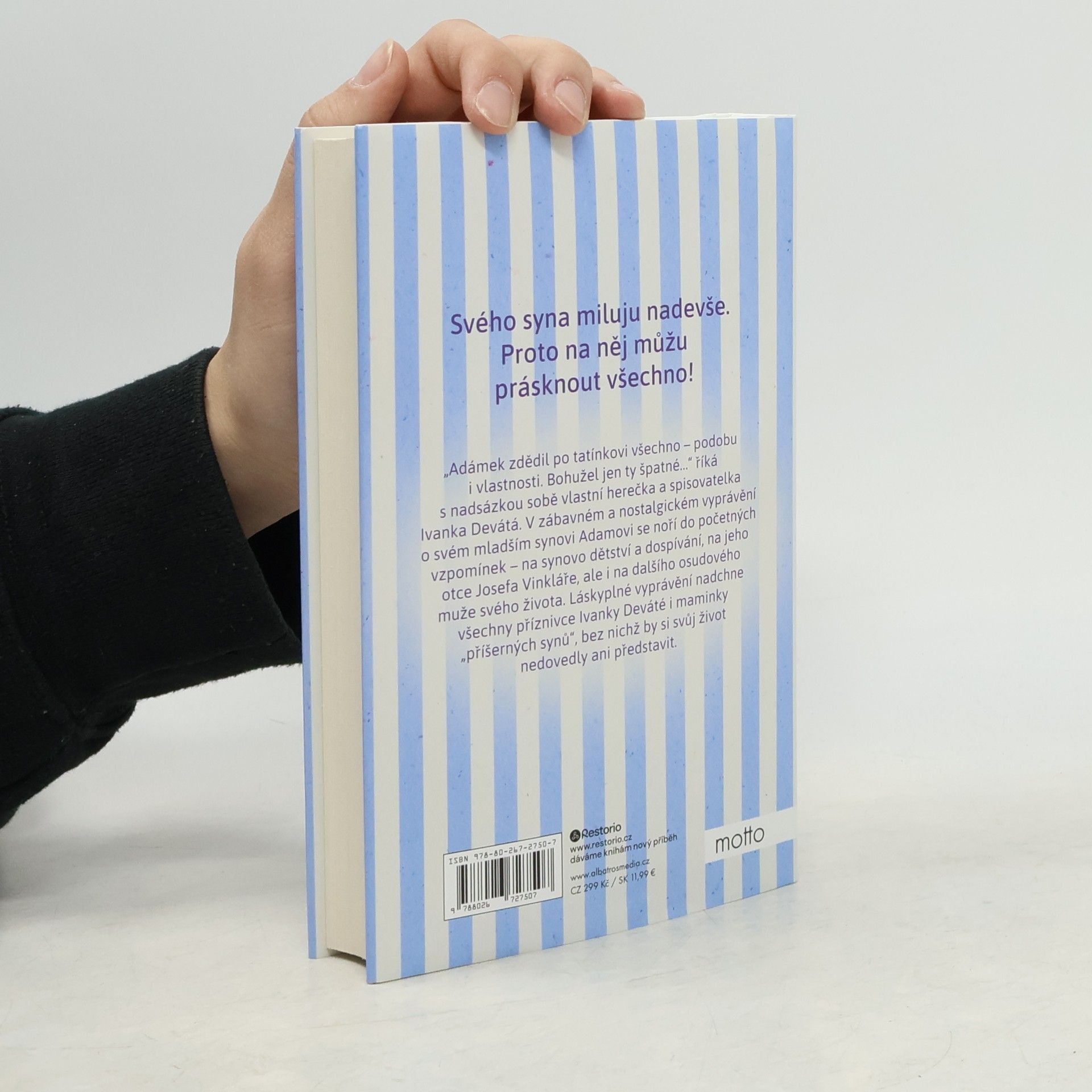 Humorné i nostalgické vyprávění české herečky, ve kterém s jemnou ironií sobě vlastní vzpomíná na výchovu mladšího synka. "Adámek zdědil po tatínkovi všechno - podobu i vlastnosti. Bohužel jen ty špatné," říká s nadsázkou sobě vlastní herečka a spisovatelka Ivanka Devátá. V zábavném a nostalgickém vyprávění o svém mladším synovi Adamovi se noří do početných vzpomínek - na synovo dětství a dospívání, na jeho otce Josefa Vinkláře, ale i na dalšího osudového muže svého života. Nakladatelská anotace.