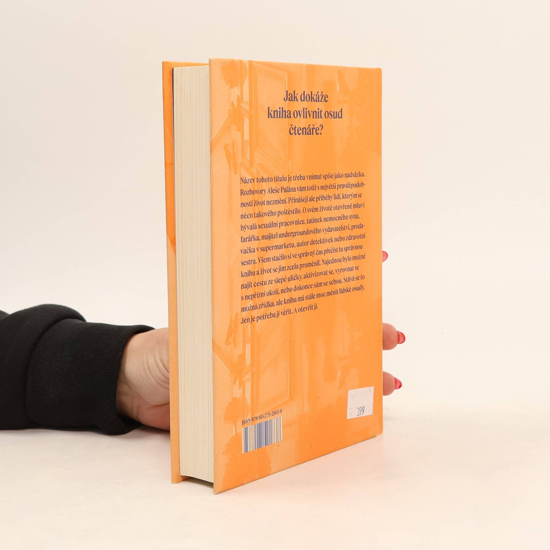Jak literární dílo dokáže ovlivnit osud čtenáře? Název této knihy je třeba vnímat spíše jako nadsázku. Rozhovory Aleše Palána vám totiž s největší pravděpodobností život nezmění. Přinášejí ale příběhy lidí, kterým se něco takového poštěstilo. O svém životě otevřeněmluví bývalá sexuální pracovnice, tatínek nemocného syna, farářka, majitel undergroundového vydavatelství, prodavačka v supermarketu, autor detektivek nebo zdravotní sestra. Všem stačilo si ve správný čas přečíst tu správnou knihu a život se jim zcela proměnil. Najednou bylo možné najít cestu ze slepé uličky, aktivizovat se, vyrovnat se s nepřízní okolí, nebo dokonce sám se sebou. Stává se to možná zřídka, ale kniha má stále moc měnit lidské osudy. Jen je potřeba jí věřit. A otevřít ji.