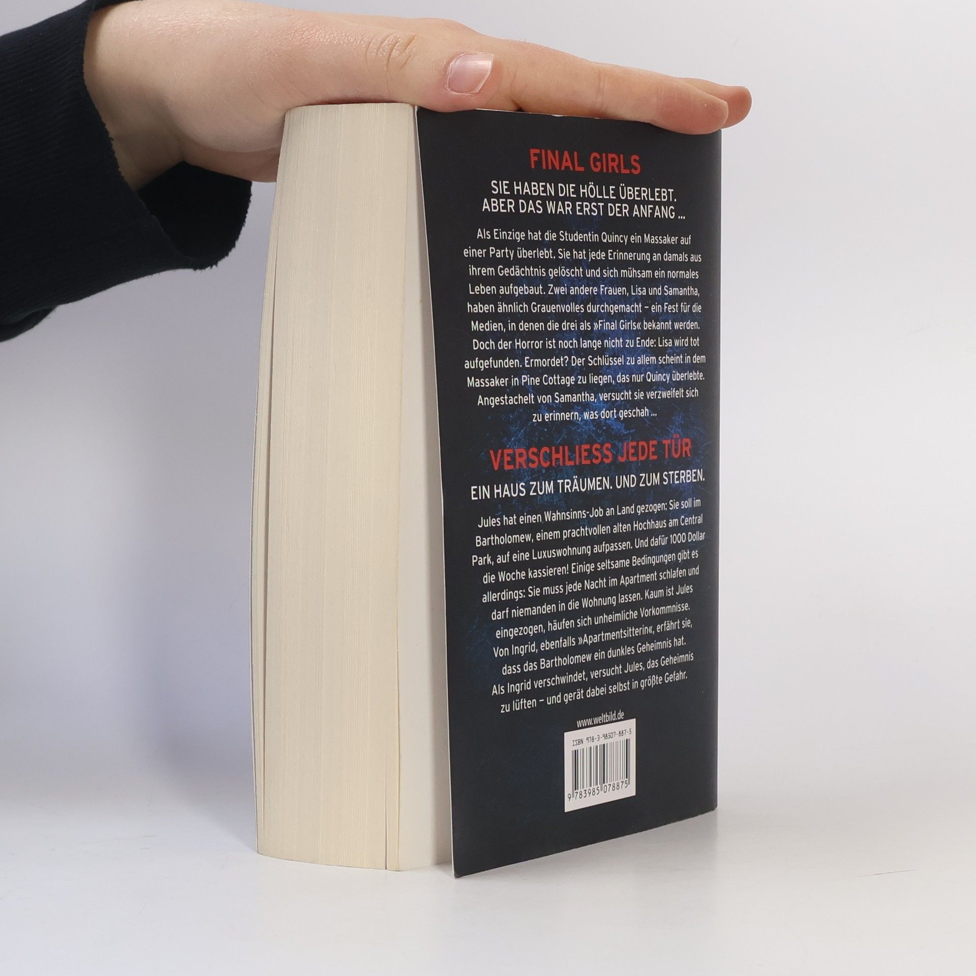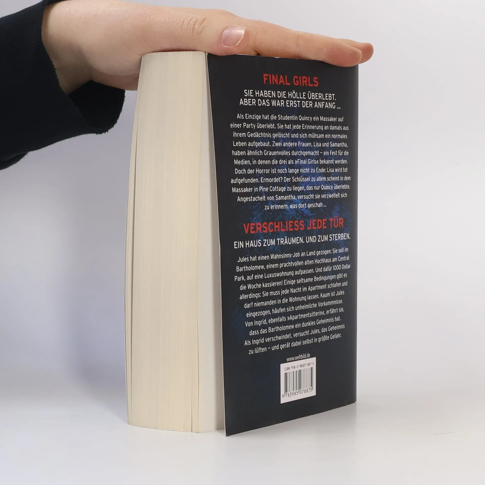 Final Girls Sie haben die Hölle überlebt. Aber das war erst der Anfang ...Als Einzige hat die Studentin Quincy ein Massaker auf einer Party überlebt. Sie hat jede Erinnerung an damals aus ihrem Gedächtnis gelöscht und sich mühsam ein normales Leben aufgebaut. Zwei andere Frauen, Lisa und Samantha, haben ähnlich Grauenvolles durchgemacht - ein Fest für die Medien, in denen die drei als »Final Girls« bekannt werden. Doch der Horror ist noch lange nicht zu Ende: Lisa wird tot aufgefunden. Ermordet? Der Schlüssel zu allem scheint in dem Massaker in Pine Cottage zu liegen, das nur Quincy überlebte. Angestachelt von Samantha, versucht sie verzweifelt sich zu erinnern, was dort geschah ... Verschließ jede TürEin Haus zum Träumen. Und zum Sterben.Jules hat einen Wahnsinns-Job an Land gezogen: Sie soll im Bartholomew, einem prachtvollen alten Hochhaus am Central Park, auf eine Luxuswohnung aufpassen. Und dafür 1000 Dollar die Woche kassieren! Einige seltsame Bedingungen gibt es allerdings: Sie muss jede Nacht im Apartment schlafen und darf niemanden in die Wohnung lassen. Kaum ist Jules eingezogen, häufen sich unheimliche Vorkommnisse. Von Ingrid, ebenfalls »Apartmentsitterin«, erfährt sie, dass das Bartholomew ein dunkles Geheimnis hat. Als Ingrid verschwindet, versucht Jules, das Geheimnis zu lüften - und gerät dabei selbst in größte Gefahr.