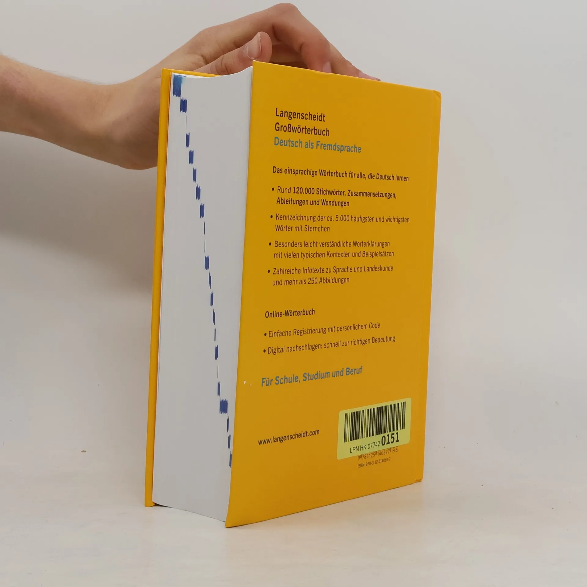 Ein einsprachiges Wörterbuch für alle, die Deutsch lernen, bietet leicht verständliche Erklärungen und zahlreiche Abbildungen. Mit rund 120.000 Stichwörtern, Zusammensetzungen, Wendungen und Beispielsätzen ist es ideal für Selbstlernende, Studierende und Sprachprofis. Es kennzeichnet die etwa 5.000 häufigsten und wichtigsten Wörter und stellt eine umfassende Ressource dar. Zusätzlich erhalten Nutzer einen 36-monatigen Zugang zum Online-Wörterbuch von Langenscheidt, der ab der Aktivierung verfügbar ist. Dieses Nachschlagewerk ist unverzichtbar für alle, die Deutsch als Fremdsprache lehren oder lernen. Die Definitionen sind auf Aktualität und Verständlichkeit geprüft, und die farbliche Hervorhebung der Stichwörter sowie die übersichtliche Gestaltung der Einträge erleichtern das schnelle Nachschlagen. Das Wörterbuch enthält auch zahlreiche Sprachgebrauchs- und Stilangaben zu umgangssprachlichen und regionalen Ausdrücken. Es ist ein unverzichtbares Hilfsmittel für Deutschlerner und sollte auf jedem Schreibtisch stehen. Der umfassende Wortschatz umfasst auch Ausdrücke aus der gesprochenen Sprache, Regional- und Vulgärsprache, die entsprechend gekennzeichnet sind. Besonders im DaF-Unterricht sind die zahlreichen Abbildungen und Infotexte zu Landeskunde, Grammatik und Sprachgebrauch hilfreich und fördern das Verständnis der deutschen Sprache und ihrer Eigenarten.