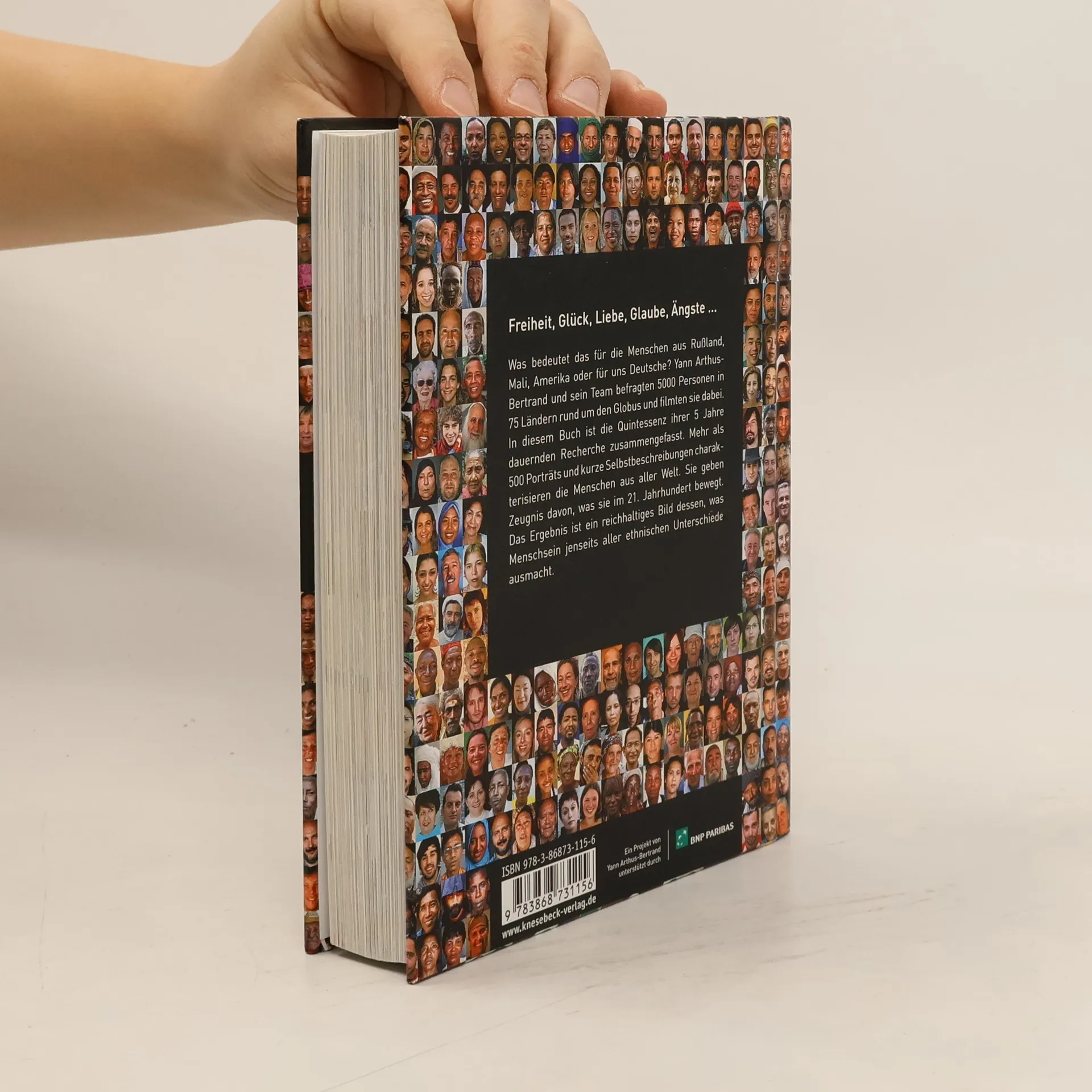 In diesem Buch beantworteten 5000 Menschen aus 75 Ländern 20 tiefgründige Fragen zu Freude, Angst, Träumen und dem Sinn des Lebens. Yann Arthus-Bertrand und sein Team präsentieren mehr als 500 Portraits und Selbstbeschreibungen, die intime Einblicke in das Menschsein und seine Herausforderungen im 21. Jahrhundert geben.