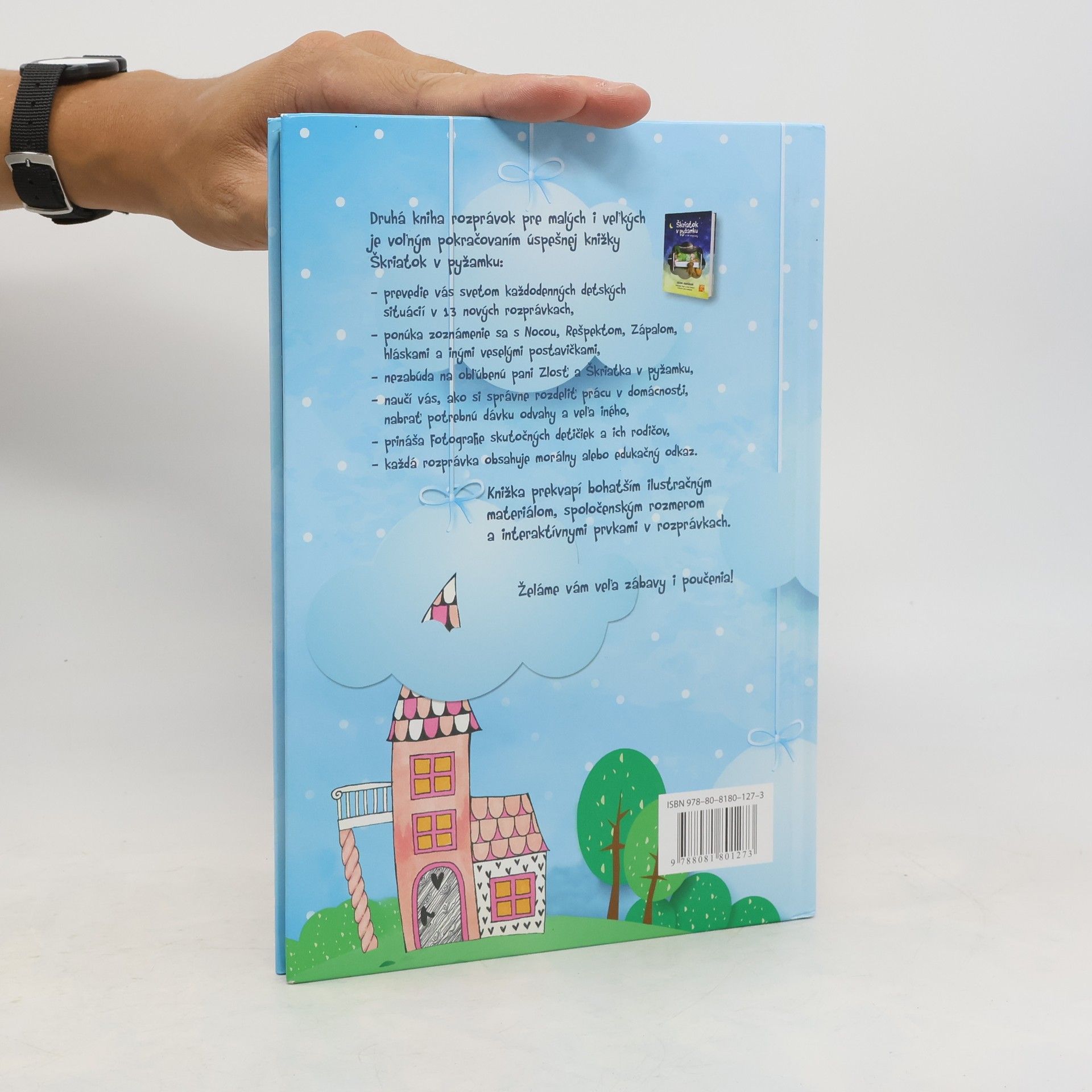 Pani Zlosť sa vracia!Druhá knižka rozprávok pre malých aj veľkých je voľným pokračovaním úspešnej knižky Škriatok v pyžamku. Prevedie vás svetom každodenných detských situácií v 13 nových rozprávkach. Hlavní hrdinovia sa popasujú so zápalom v ušku, s trénovaním výslovnosti hlásky R, s obhrýzaním nechtíkov, s nechuťou podeliť sa o hojdačku s inými deťmi, s nočným vybiehaním z postieľky a s ďalšími detskými trampotami.Knižka je ideálnym návodom pre rodičov na zvládnutie výchovných problémov s vtipom a ľahkosťou. Ponúka zoznámenie sa s Nocou, Rešpektom, bacilmi Helom a Monelou a inými veselými postavičkami. Nezabúda ani na obľúbenú pani Zlosť a Škriatka v pyžamku. Knižka prekvapí bohatším ilustračným materiálom, spoločenským rozmerom a interaktívnymi prvkami v rozprávkach.Knižka je vhodná pre čitateľov od 3 rokov.
