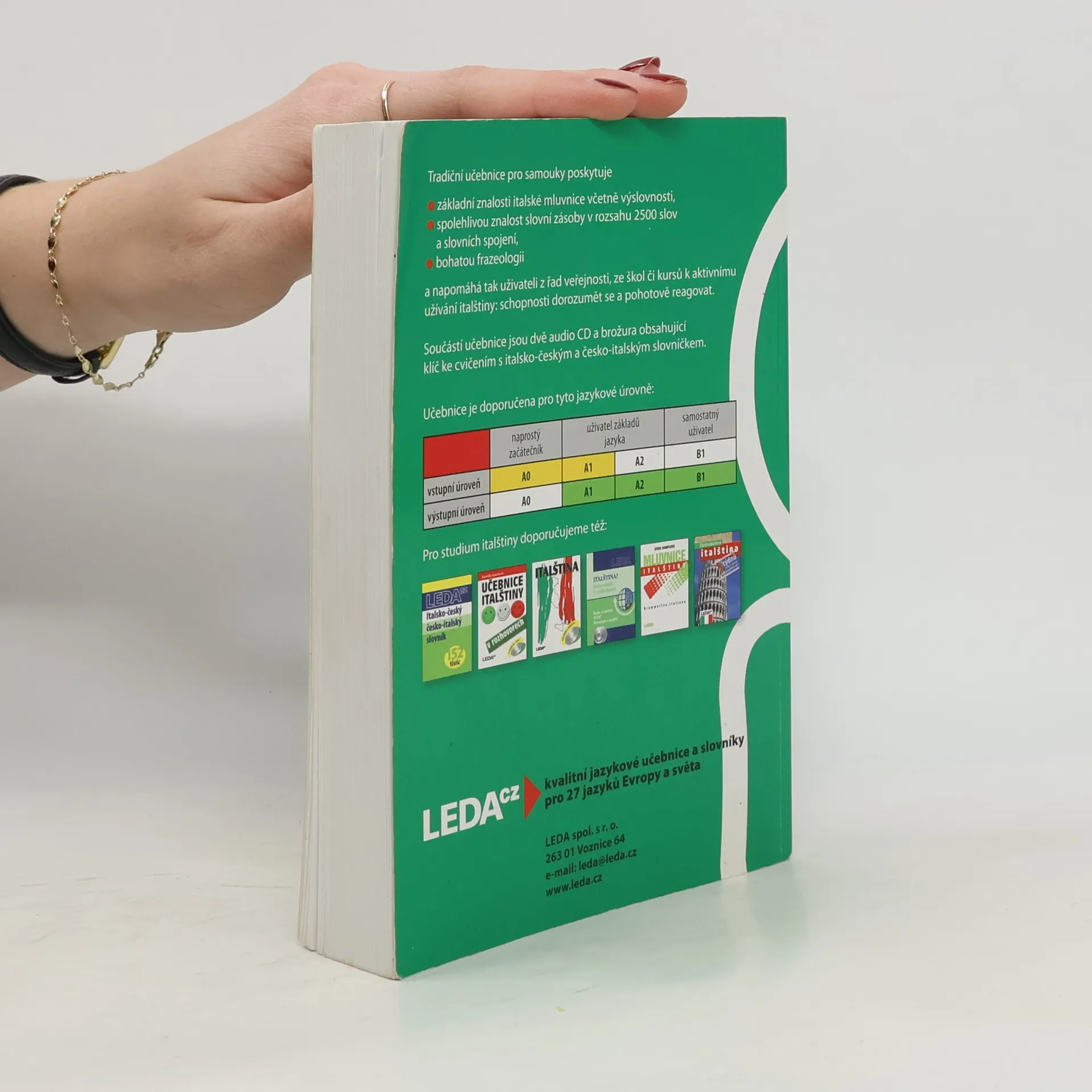 Oblíbená učebnice pro samouky obsahuje italskou mluvnici, slovní zásobu v rozsahu asi 2500 slov, frazeologii a výslovnost. Důraz je kladen na aktivní užívání italštiny, schopnost dorozumět se a pohotově reagovat v nejčastějších situacích. Každou lekci uzavírají kvizy, které mají vzbudit zájem uživatele o kulturu Itálie. Učebnice je určena také pro kursy a školy. Její součástí je klíč ke cvičením s italsko-českým a česko-italským slovníčkem v samostatné brožuře a nahrávka vybraných textů na dvou audio CD.