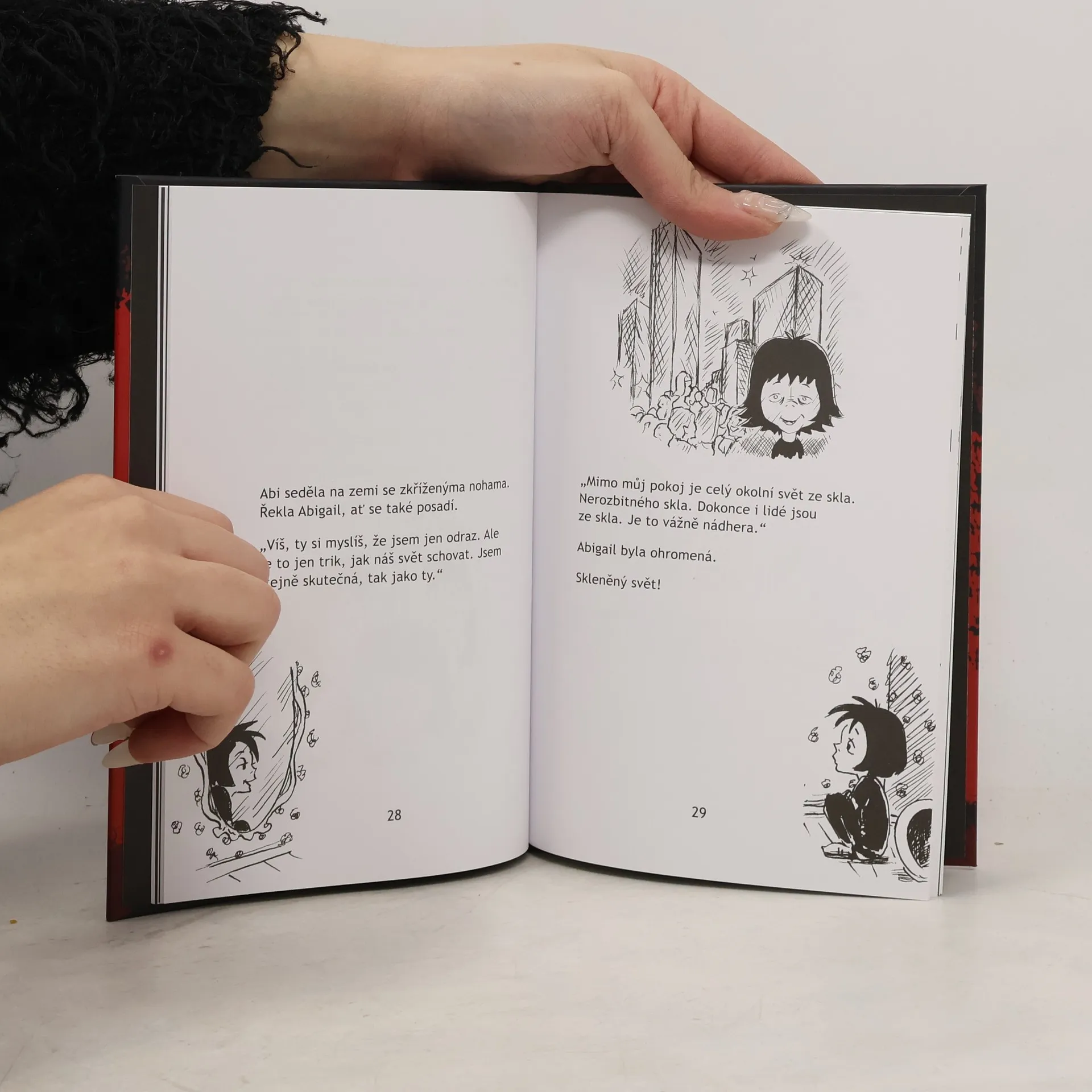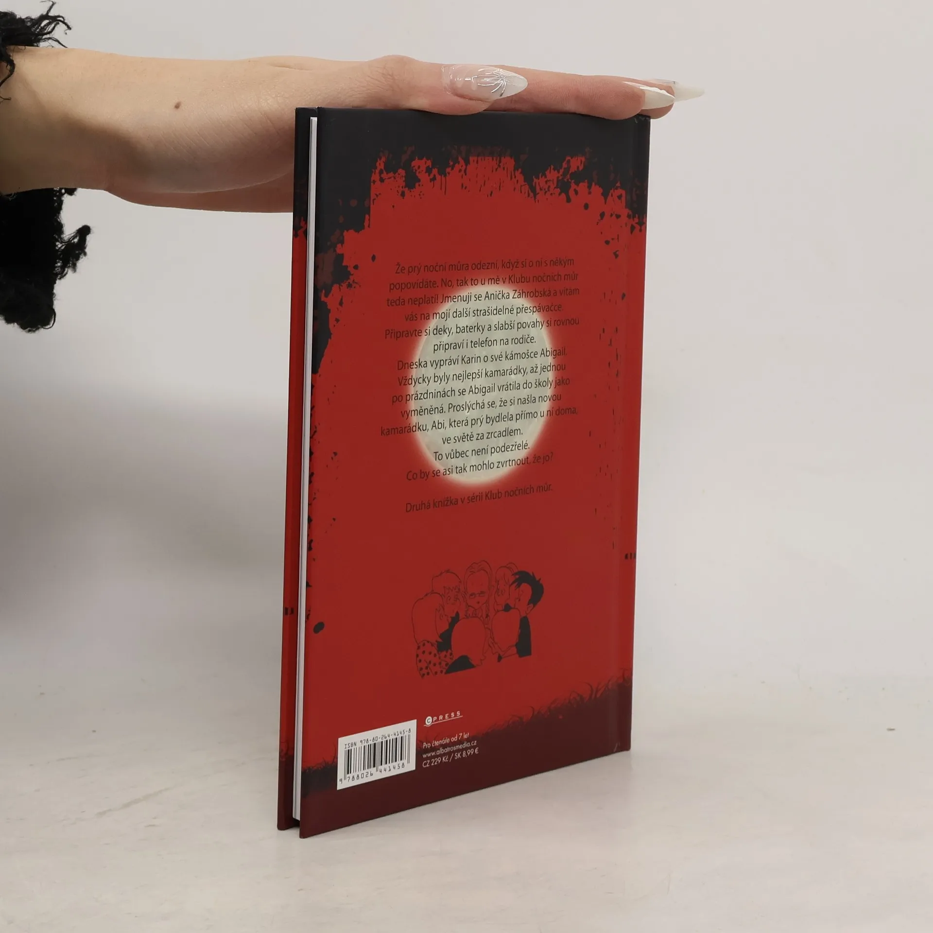Že prý noční můra odezní, když si o ní s někým popovídáte. No, tak to u mě v Klubu nočních můr teda neplatí! Jmenuji se Anička Záhrobská a vítám vás na mojí další strašidelné přespávačce. Připravte si deky, baterky a slabší povahy si rovnou připraví i telefon na rodiče. Dneska vypráví Karin o své kámošce Abigail. Vždycky byly nejlepší kamarádky, až jednou po prázdninách se Abigail vrátila do školy jako vyměněná. Proslýchá se, že si našla novou kamarádku, Abi, která prý bydlela přímo u ní doma, ve světě za zrcadlem. To vůbec není podezřelé. Co by se asi tak mohlo zvrtnout, že jo? Druhá knížka v sérii Klub nočních můr.