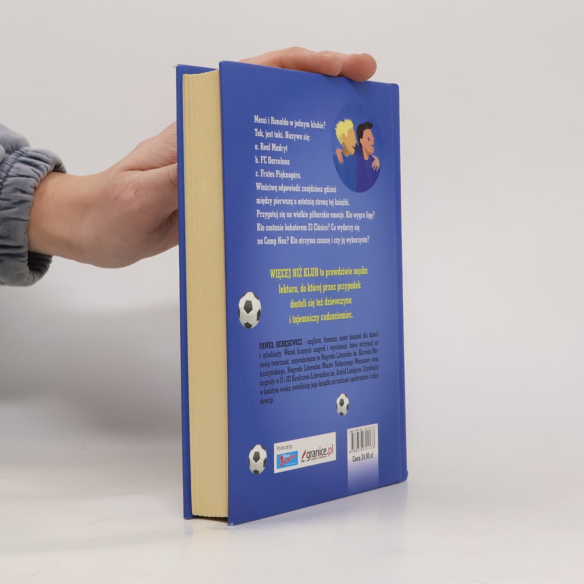 Filip i Marek żyją piłką. Nawet ich ksywy to odpowiednio Messi i Ronaldo. Drużyna jest ich drugą rodziną, trener drugim ojcem, a wtykająca we wszystko nos koleżanka z klasy menedżerka Ewa byłaby nawet całkiem dobrym materiałem na… dziewczynę? Niestety - te szczere uczucia nie wpływają na grę osiedlowego klubu Fruteksu Pięknogóra. Drużyna jest słaba. Kolejni trenerzy rozkładają ręce, sponsor się wycofuje, a wyniki meczów wołają o pomstę do nieba. I właśnie w tym momencie wszędobylski nos Ewki bardzo się przydaje. Czy nowy trener poprowadzi chłopaków do zwycięstwa? Czy naprawdę zna tego prawdziwego Messiego? I czy pomoże chłopakom spełnić marzenia o grze w hiszpańskiej lidze? Zapraszamy do lektury pierwszej od czasów Do przerwy 0:1 genialnej powieści dla dzieci o piłce nożnej.
