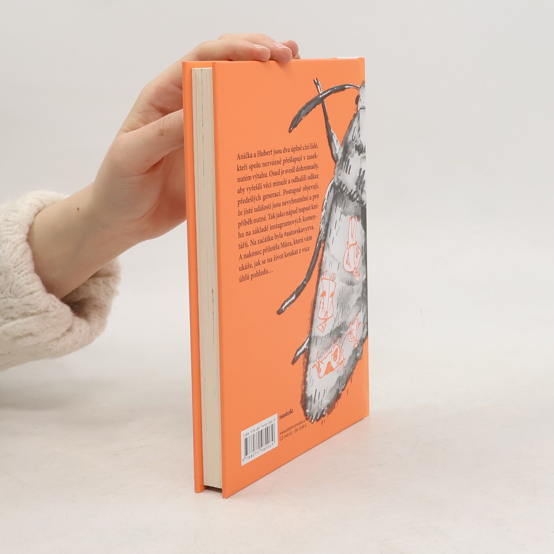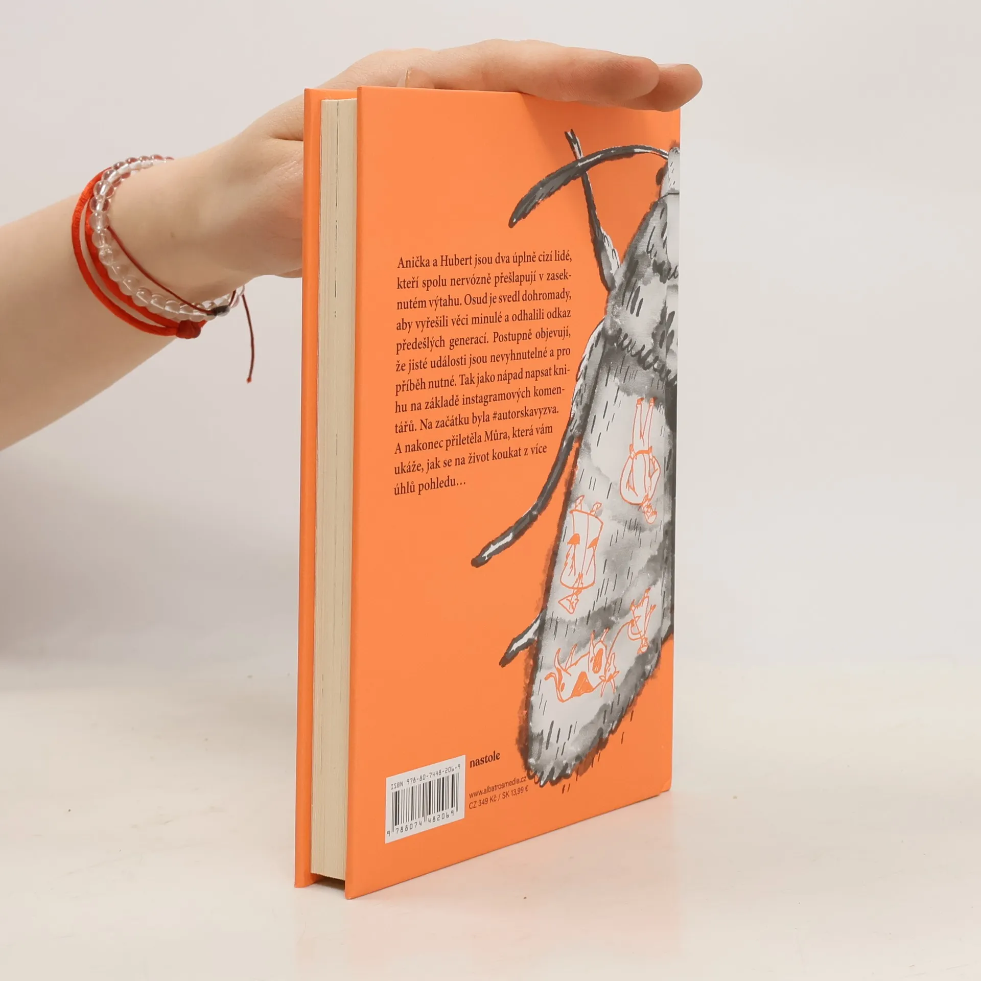 Zábavná novela, která vznikla jako autorská výzva na sociálních sítích oblíbené české herečky. Anička a Hubert jsou dva úplně cizí lidé. Teď ale nervózně přešlapují v zaseknutém výtahu a brzy mají zjistit, že jejich cesty se neprotnuly náhodou. Osud je svedl dohromady, aby vyřešili věci minulé a odhalili odkaz předešlých generací. Postupně objevují, že jisté události jsou nevyhnutelné, pro příběh nutné a žádoucí. Tak jako nápad napsat knihu na základě instagramových komentářů. Na začátku byla #autorskavyzva. A nakonec přiletěla Můra, která vám ukáže, jak se na život koukat z více úhlů pohledu... Nakladatelská anotace.