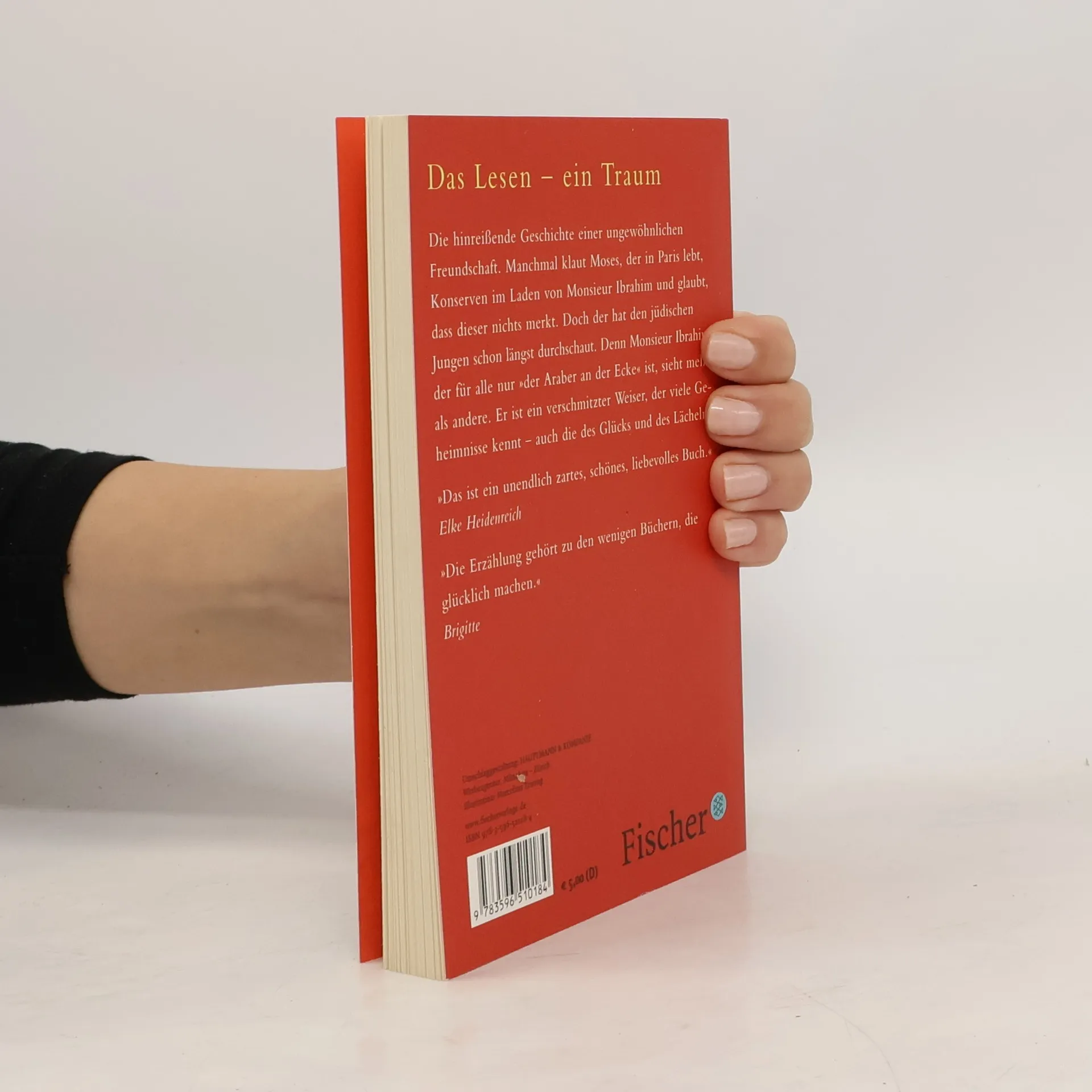 Manchmal klaut Moses, der in Paris lebt, Konserven im Laden von Monsieur Ibrahim und glaubt, daß dieser noch nichts gemerkt hat. Doch der hat den jüdischen Jungen schon längst durchschaut. Denn Monsieur Ibrahim, der für alle nur ››der Araber an der Ecke‹‹ ist, sieht mehr als andere. Er ist ein verschmitzter Weiser, der viele Geheimnisse kennt, auch die des Glücks und des Lächelns. Moses ist erst elf und lebt mit seinem Vater, einem schweigsamen und melancholischen Mann, in einer düsteren Wohnung. Er führt ihm den Haushalt, und ab und an legt er vom Haushaltsgeld etwas auf die Seite für einen Besuch bei den Mädchen in der Rue de Paradis. Laufen die Dinge mal nicht nach seiner Vorstellung, holt er sich Rat bei Monsieur Ibrahim, der in jeder Lebenslage etwas Passendes in seinem Koran zu finden weiß. Moses spürt, auf Monsieur Ibrahim, der Tag um Tag unverrückbar in seinem Laden sitzt, ist Verlaß. Als die Geschichte mit seinem schwermütigen Vater die schlimmstmögliche Wendung nimmt, findet er in ihm einen zuverlässigen Freund. Die beiden begeben sich auf eine abenteuerliche Reise, und Moses erfährt, daß nicht alle Dinge so sind, wie sie scheinen. Denn Monsieur Ibrahim ist kein Araber, genauso wenig, wie die Rue Bleue blau ist. 'Monsieur Ibrahim und die Blumen des Koran' wurde im Jahr 2004 mit Omar Sharif als Monsieur Ibrahim verfilmt.