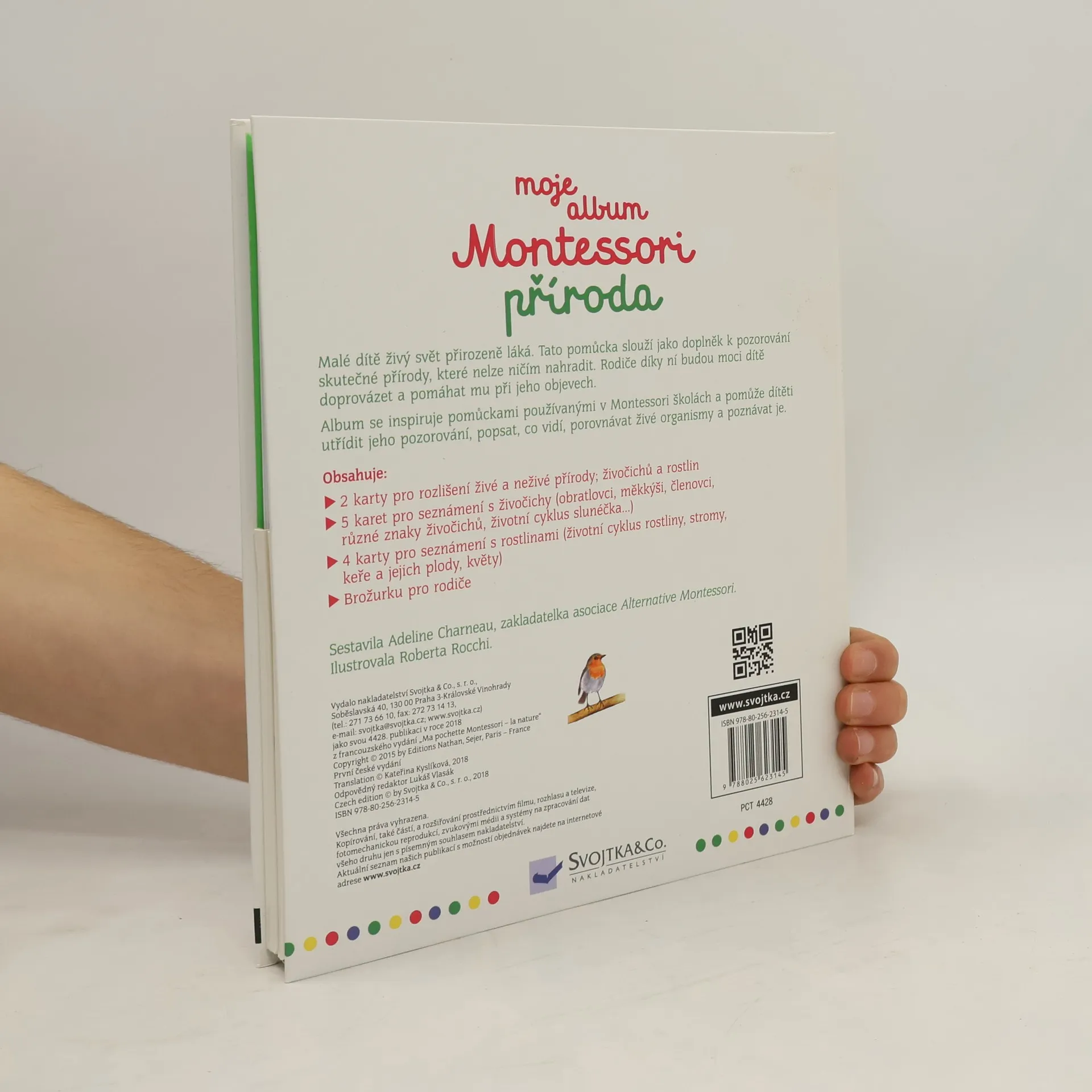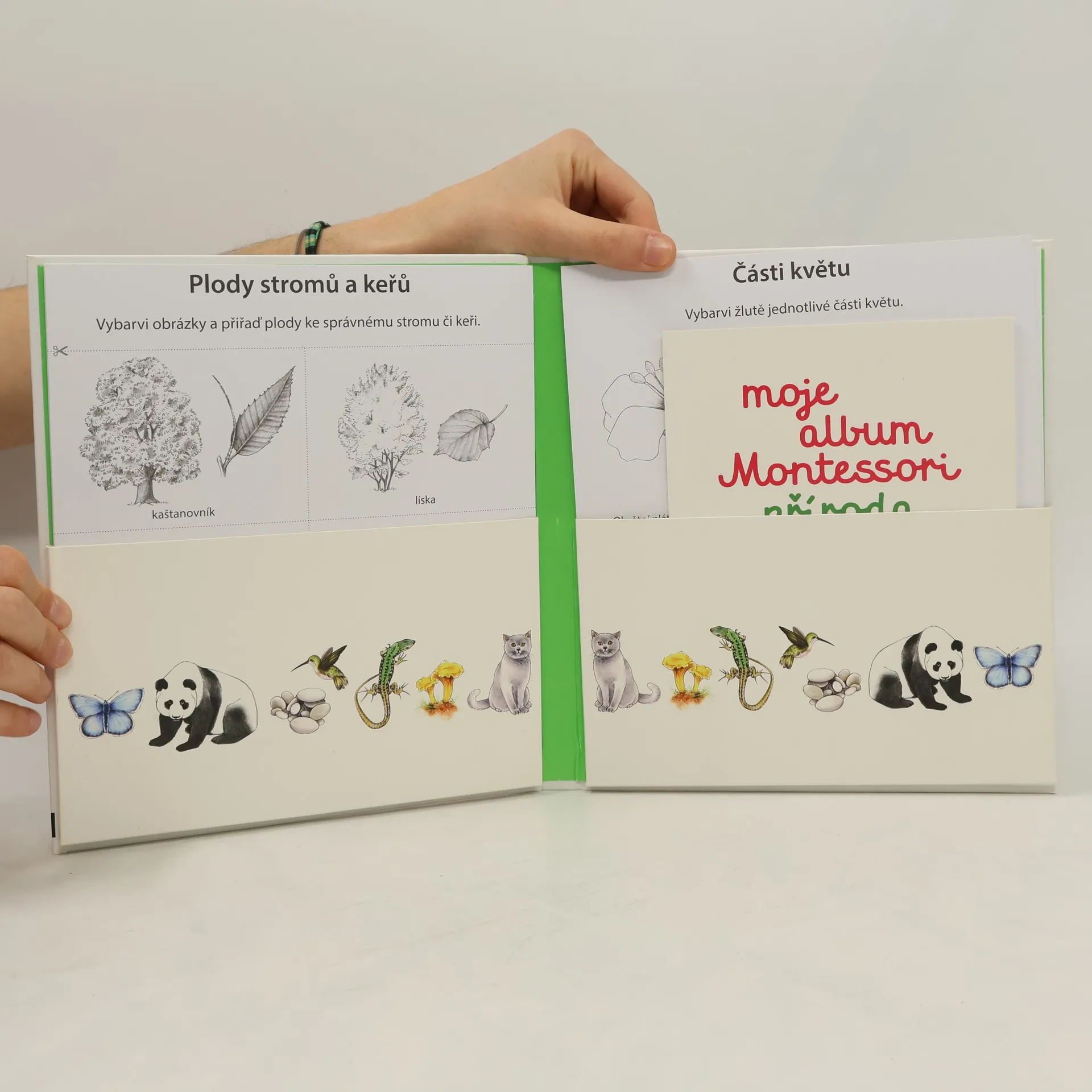 Malé dítě živý svět přirozeně láká. Tato pomůcka slouží jako doplněk k pozorování skutečné přírody, které nelze ničím nahradit. Rodiče díky ní budou moci dítě doprovázet a pomáhat mu při jeho objevech. Album se inspiruje pomůckami používanými v Montessori školách a pomůže dítěti utřídit jeho pozorování, popsat, co vidí, porovnávat živé organismy a poznávat je. Najdete v něm spoustu kartiček k objevování živočichů a rostlin: karty pro rozlišení živé a neživé přírody, živočichů a rostlin; karty pro seznámení s živočichy (obratlovci, měkkýši, členovci, různé znaky živočichů, životní cyklus slunéčka…); karty pro seznámení s rostlinami (životní cyklus rostliny, stromy, keře a jejich plody, květy). Album obsahuje též brožurku pro rodiče s návody na aktivity a informacemi o pedagogice Montessori.