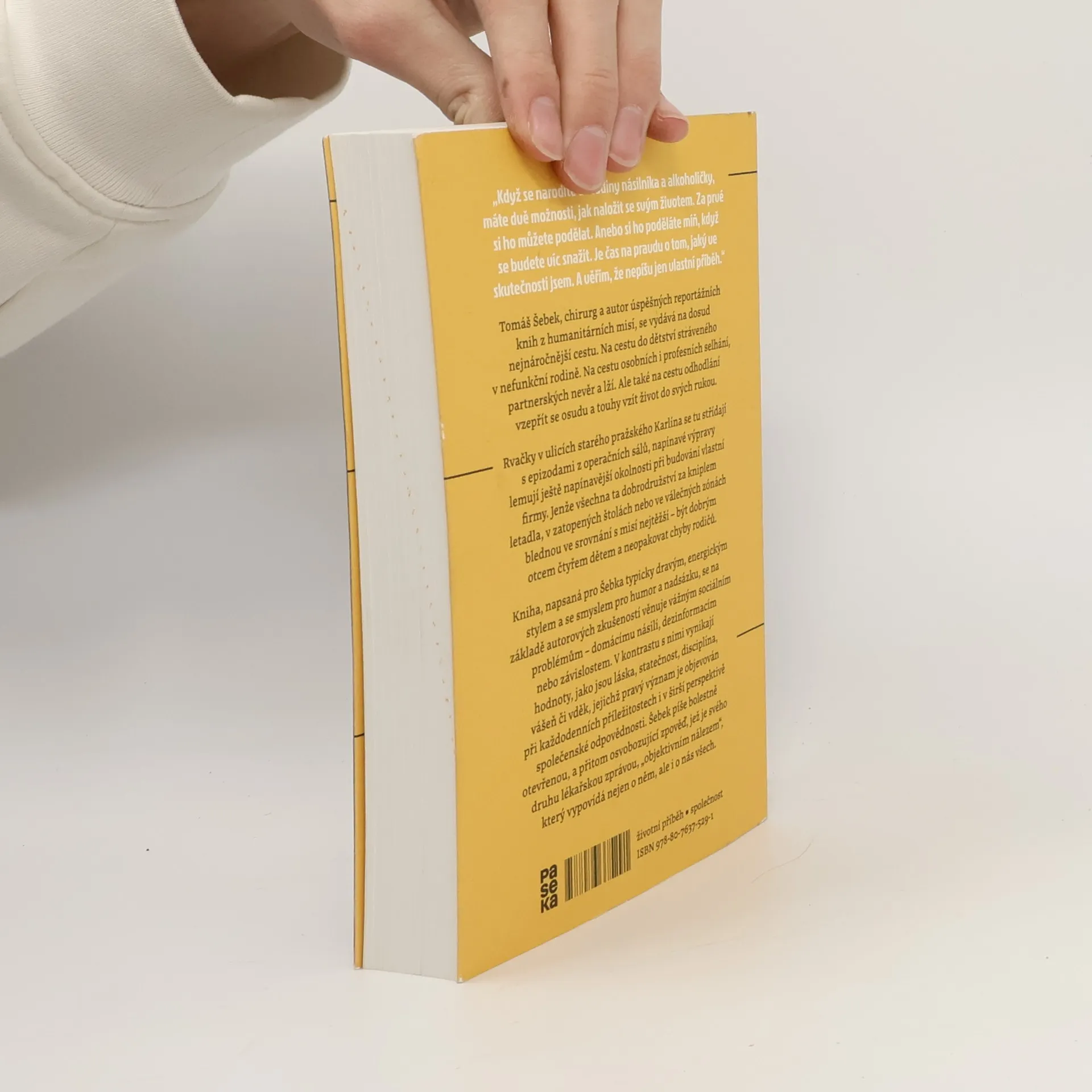 Tomáš Šebek, chirurg a autor úspěšných reportážních knih z humanitárních misí, se vydává na dosud nejnáročnější cestu. Na cestu do dětství stráveného v nefunkční rodině. Na cestu osobních i profesních selhání, partnerských nevěr a lží. Ale také na cestu odhodlání vzepřít se osudu a touhy vzít život do svých rukou. Rvačky v ulicích starého pražského Karlína se tu střídají s epizodami z operačních sálů, napínavé výpravy lemují ještě napínavější okolnosti při budování vlastní firmy. Jenže všechna ta dobrodružství za kniplem letadla, v zatopených štolách nebo ve válečných zónách blednou ve srovnání s misí nejtěžší – být dobrým otcem čtyřem dětem a neopakovat chyby rodičů. Kniha, napsaná pro Šebka typicky dravým, energickým stylem a se smyslem pro humor a nadsázku, se na základě autorových zkušeností věnuje vážným sociálním problémům – domácímu násilí, dezinformacím nebo závislostem. V kontrastu s nimi vynikají hodnoty, jako jsou láska, statečnost, disciplína, vášeň či vděk, jejichž pravý význam je objevován při každodenních příležitostech i v širší perspektivě společenské odpovědnosti. Šebek píše bolestně otevřenou, a přitom osvobozující zpověď, jež je svého druhu lékařskou zprávou, „objektivním nálezem“, který vypovídá nejen o něm, ale i o nás všech.