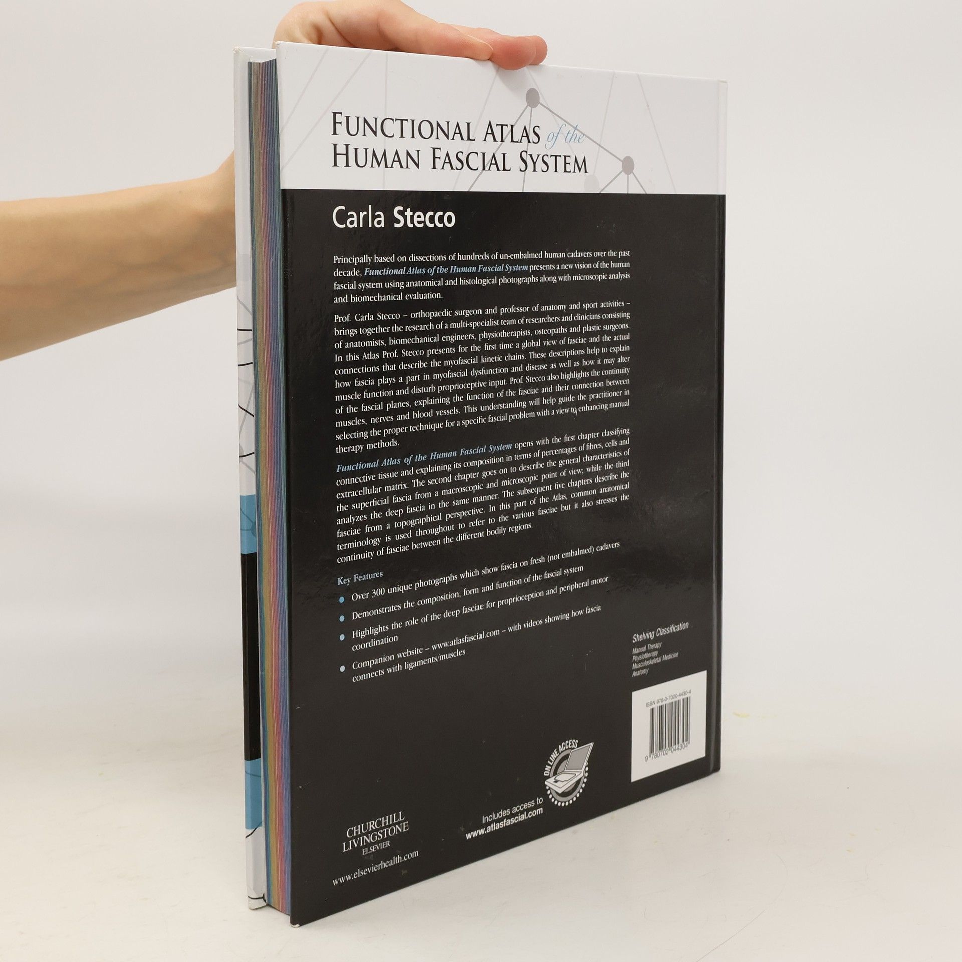 Based on dissections of hundreds of un-embalmed human cadavers, this atlas presents a comprehensive view of the human fascial system through anatomical and histological photographs, microscopic analysis, and biomechanical evaluation. Authored by Prof. Carla Stecco, an orthopaedic surgeon and anatomy professor, it integrates research from a diverse team of specialists, including anatomists, biomechanical engineers, physiotherapists, osteopaths, and plastic surgeons. For the first time, the atlas offers a global perspective on fasciae and their connections within myofascial kinetic chains, elucidating their role in dysfunction and disease, as well as their impact on muscle function and proprioceptive input. Prof. Stecco emphasizes the continuity of fascial planes and their connections to muscles, nerves, and blood vessels, guiding practitioners in selecting appropriate techniques for specific fascial issues to enhance manual therapy. The atlas begins with a classification of connective tissue, detailing its composition, and proceeds to examine the superficial and deep fascia from both macroscopic and microscopic viewpoints. The subsequent chapters provide a topographical analysis of fasciae, using common anatomical terminology while highlighting their interconnectivity across bodily regions. Over 300 unique photographs illustrate the composition, form, and function of the fascial system, underscoring the deep fascia's role in pr