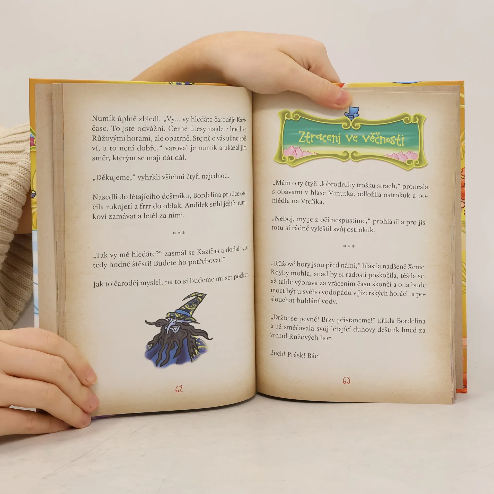 Málokdo tuší, že čerti mají nejraději poslední den v roce. Jen si to představte: všude bujaré veselí, vůně kouře a síry a ohlušující rachot petard a rachejtlí. Vždyť to je pekelný ráj na zemi! Jenže co když nový rok nepřijde a místo toho čas začne běžet pozpátku? To je pořádně zapeklitá čertovina! V pekle obrat času způsobí pořádný poprask. A nezbývá nic jiného než vyslat čerta Zbrklíka na dobrodružnou záchrannou výpravu do Země Věků. A k tomu bude zapotřebí spojit síly se starými přáteli. Obzvlášť když se budou muset postavit samotnému Kazičasovi, škodolibému a zlomyslnému čaroději. Vydejte se spolu se Zbrklíkem a jeho přáteli za dobrodružstvím do Země Věků. Čeká vás příběh o přátelství, pekelných kouzlech a pořádných vylomeninách.