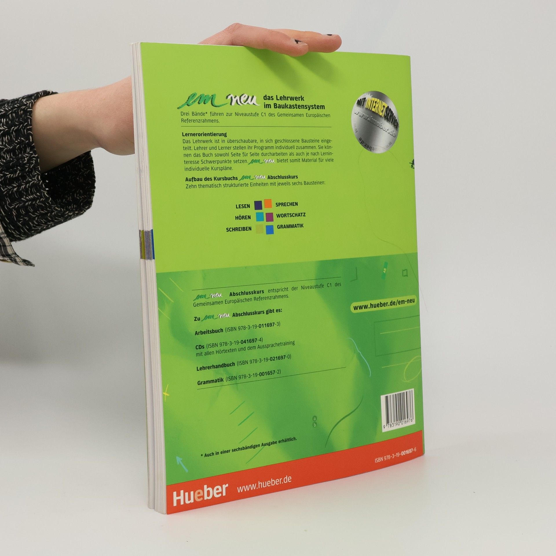 em neu Abschlusskurs erweitert den Mittelstufenstoff und bietet eine gezielte Vorbereitung auf das Goethe-Zertifikat C1. Zur Vorbereitung auf die entsprechende TELC-Prüfung bieten wir Ihnen ein kostenloses Zusatzheft (978-3-19-111697-2) bzw. Download-Materialien im Internet ( http://www. hueber. de/em-neu).