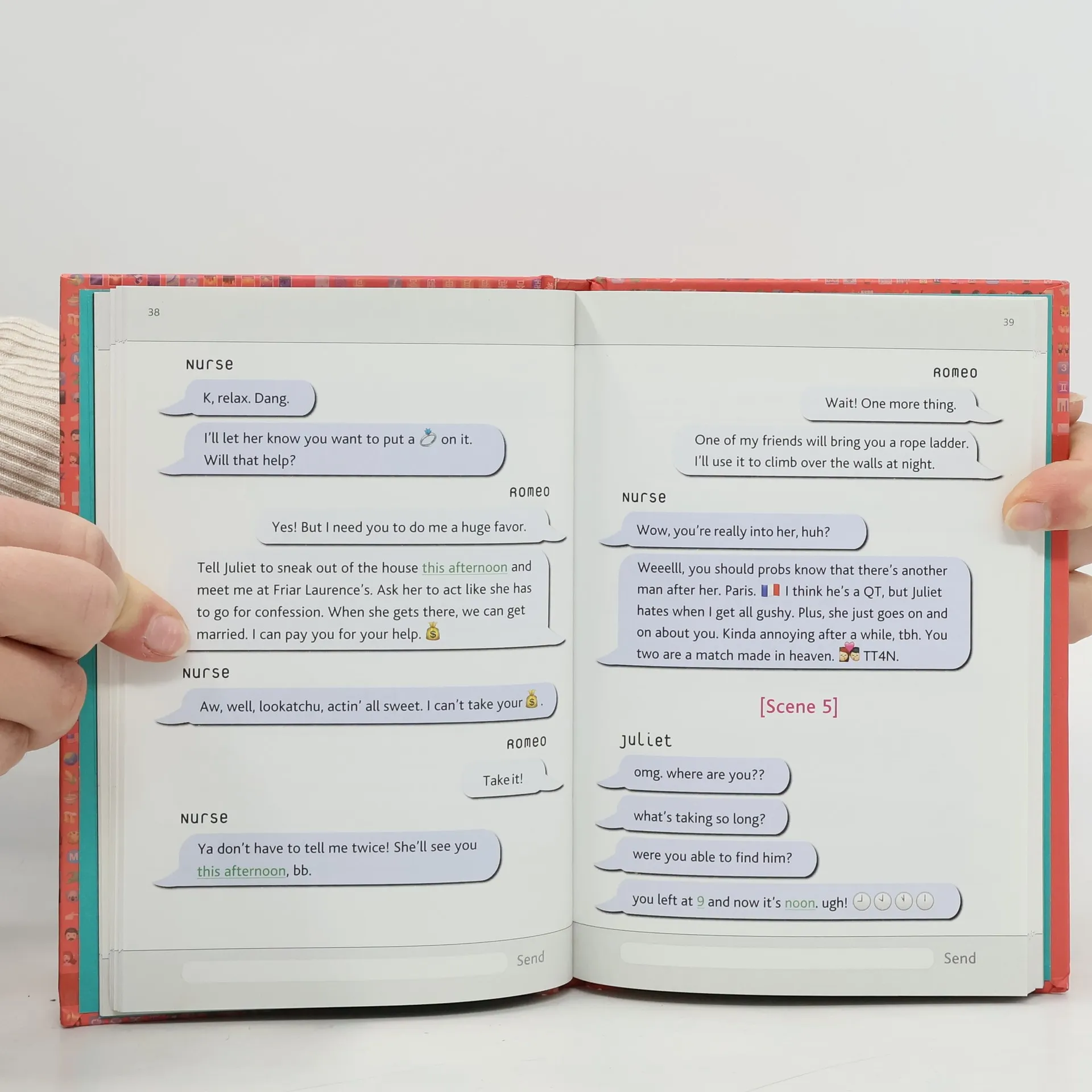 A modernized adaptation of William Shakespeare's play about the star-crossed lovers Romeo and Juliet, told through texts, complete with emojis and hashtags.