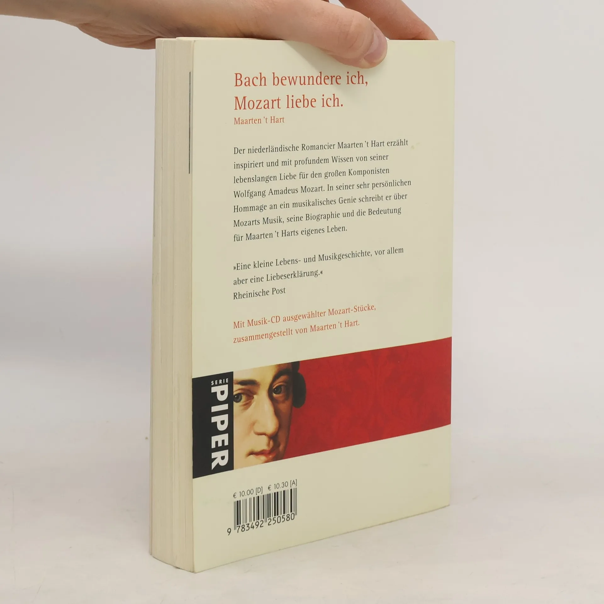 Der niederländische Romancier Maarten ’t Hart erzählt inspiriert und mit profundem Wissen von seiner lebenslangen Liebe für den großen Komponisten Wolfgang Amadeus Mozart. In seiner sehr persönlichen Hommage an ein musikalisches Genie schreibt er über Mozarts Musik, seine Biographie und die Bedeutung für Maarten ’t Harts eigenes Leben. Mit Musik-CD ausgewählter Mozart-Stücke, zusammengestellt von Maarten ’t Hart.
