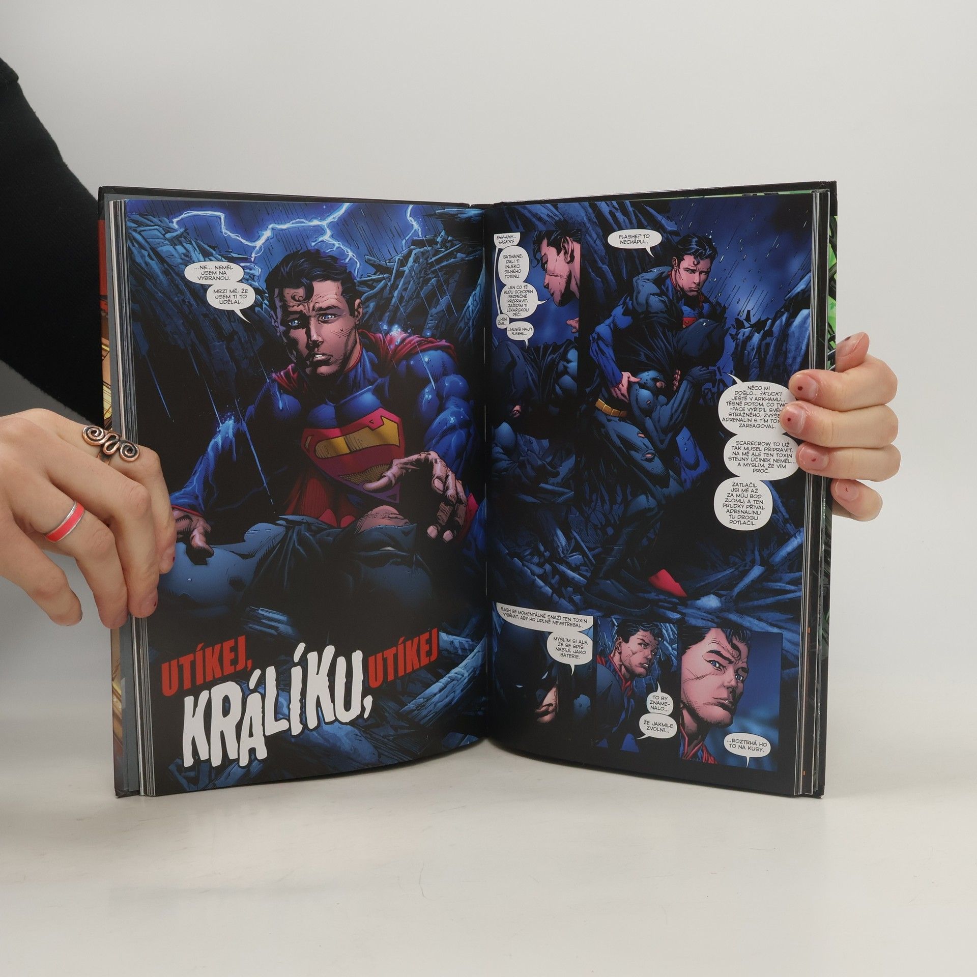 Hromadný útěk z Arkhamovy léčebny je pro Batmana jen začátkem nové noční můry. Záhadné sérum extrémně posiluje superpadouchy včetně Two-Face, Clayface a Deathstrokea. Kdo je však tajemný Bílý králík, který je neustále před Temným rytířem jakoby o krok napřed? Na pomoc přijdou Superman, Flash a Wonder Woman, ale bude to stačit, když sám Batman začíná přicházet o rozum? Obsahuje sešity série Batman - The Dark Knight (NEW 52) #1-8 (září 2011 - duben 2012)