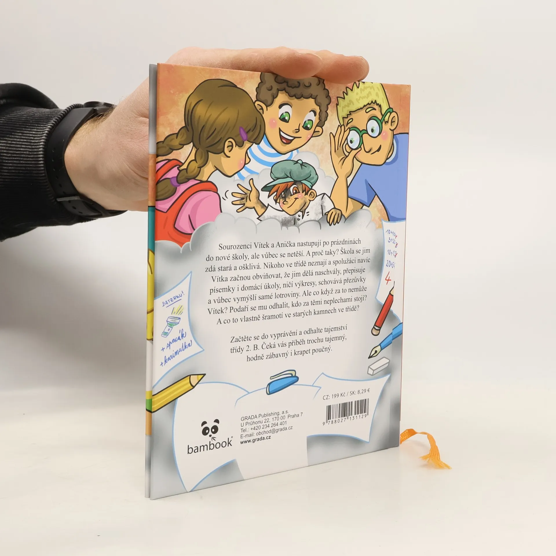 Sourozenci Vítek a Anička nastupují po prázdninách do nové školy, ale vůbec se netěší. A proč taky? Škola se jim zdá stará a ošklivá. Nikoho ve třídě neznají a spolužáci navíc Vítka začnou obviňovat, že jim dělá naschvály, přepisuje písemky i domácí úkoly, ničí výkresy, schovává přezůvky a vůbec vymýšlí samé lotroviny. Ale co když za to nemůže Vítek? Podaří se mu odhalit, kdo za těmi neplechami stojí? A co to vlastně šramotí ve starých kamnech ve třídě? Začtěte se do vyprávění a odhalte tajemství třídy 2. B. Čeká vás příběh trochu tajemný, hodně zábavný i krapet poučný.