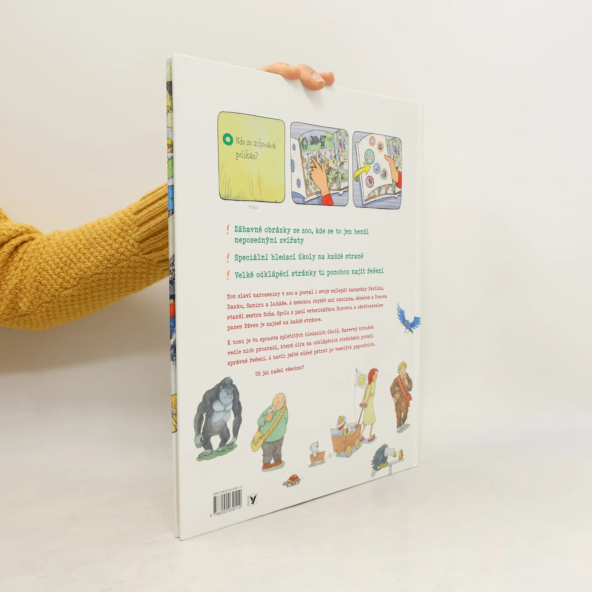Tom slaví narozeniny v zoo a pozval i svoje nejlepší kamarády Pavlíka, Danku, Samiru a Lukáše. A nemohou chybět ani maminka, dědeček a Tomova starší sestra Soňa. Spolu s paní veterinářkou Horovou a ošetřovatelem panem Pávem je najdeš na každé stránce. K tomu je tu spousta spletitých hledacích úkolů. Barevný kroužek vedle nich prozradí, která díra na odklápěcích stránkách poradí správné řešení.