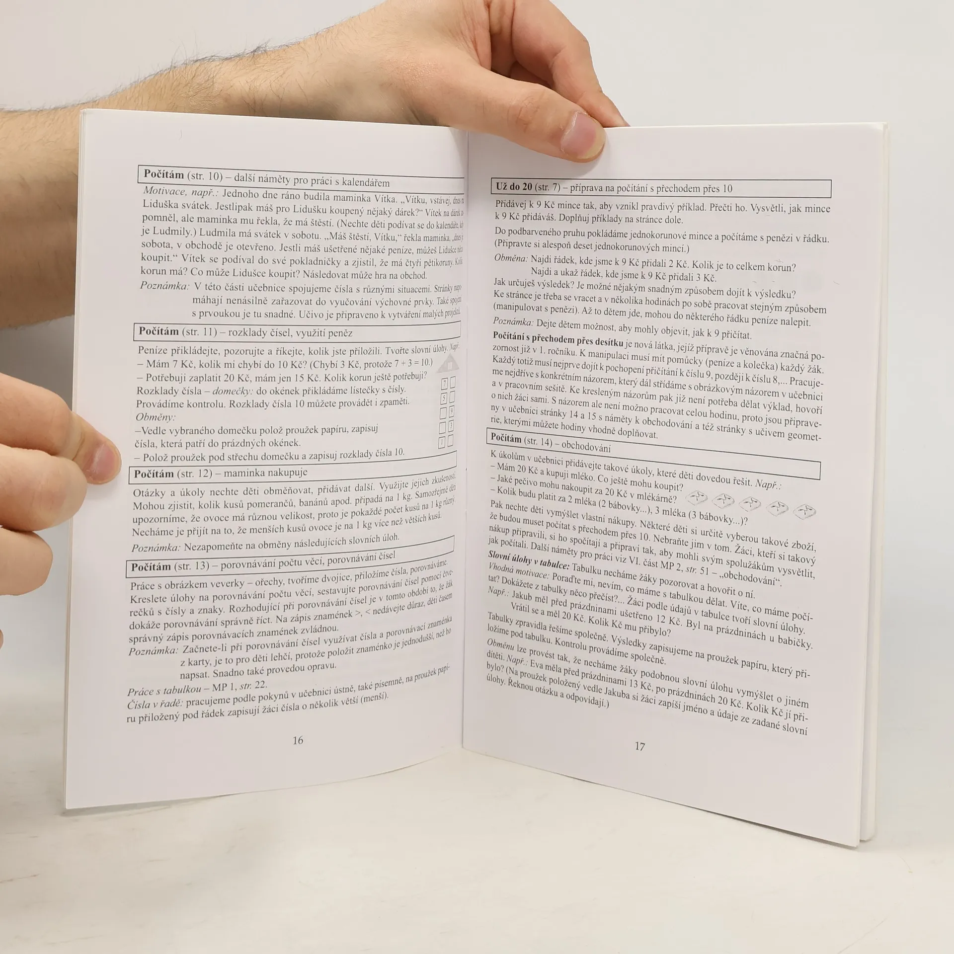 Obsahuje metodicko-didaktická doporučení pro vyučování matematiky s činnostním charakterem, náměty pro práci s učebnicí a pracovními sešity, vysvětlení významu činnostního řešení slovních úloh a didaktickou hru "na obchod" a její místo v hodinách matematiky.
