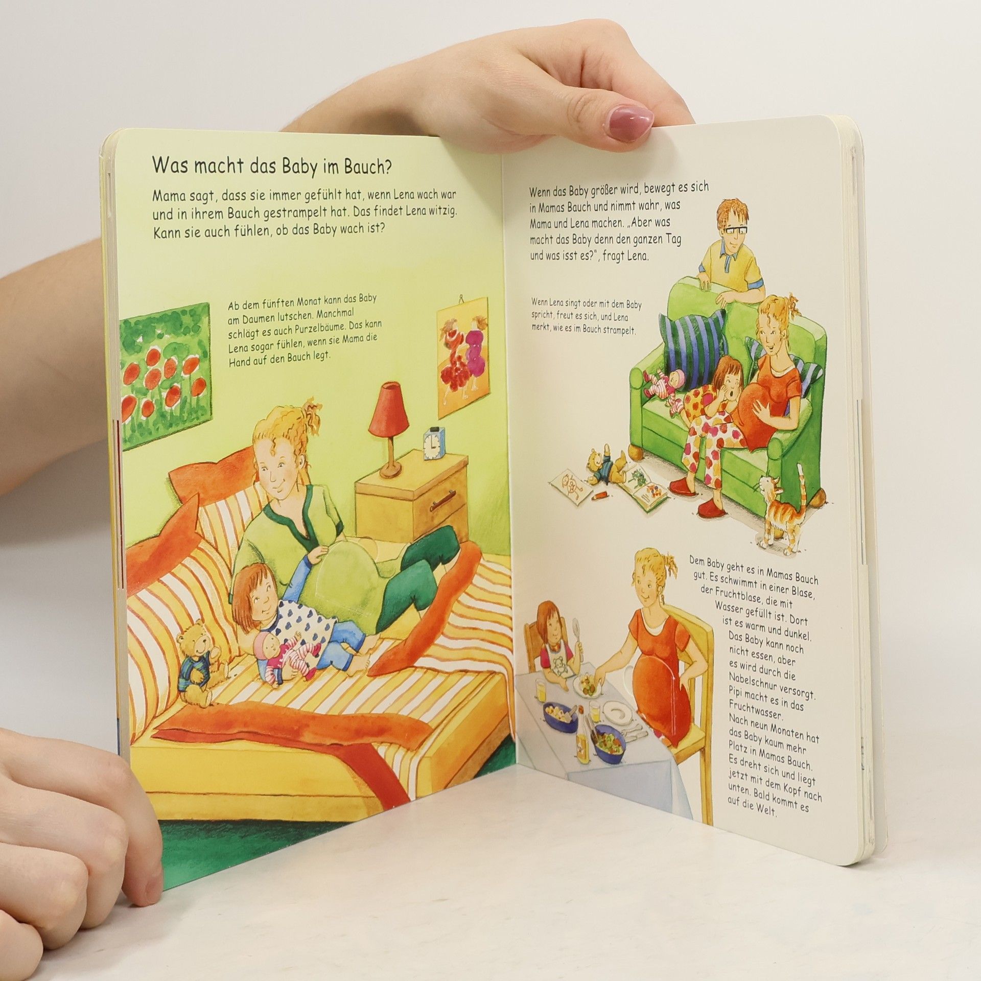 Bald wird Lena ein Geschwisterchen bekommen. Sie freut sich schon, aber ein bisschen muss sie noch warten. Nun möchte Lena genau wissen, wie das Baby in Mamas Bauch wächst, was es isst und wann es endlich rauskommt. Viele Informationen zum Thema Familienzuwachs mit zahlreichen Klappen und Schiebern.