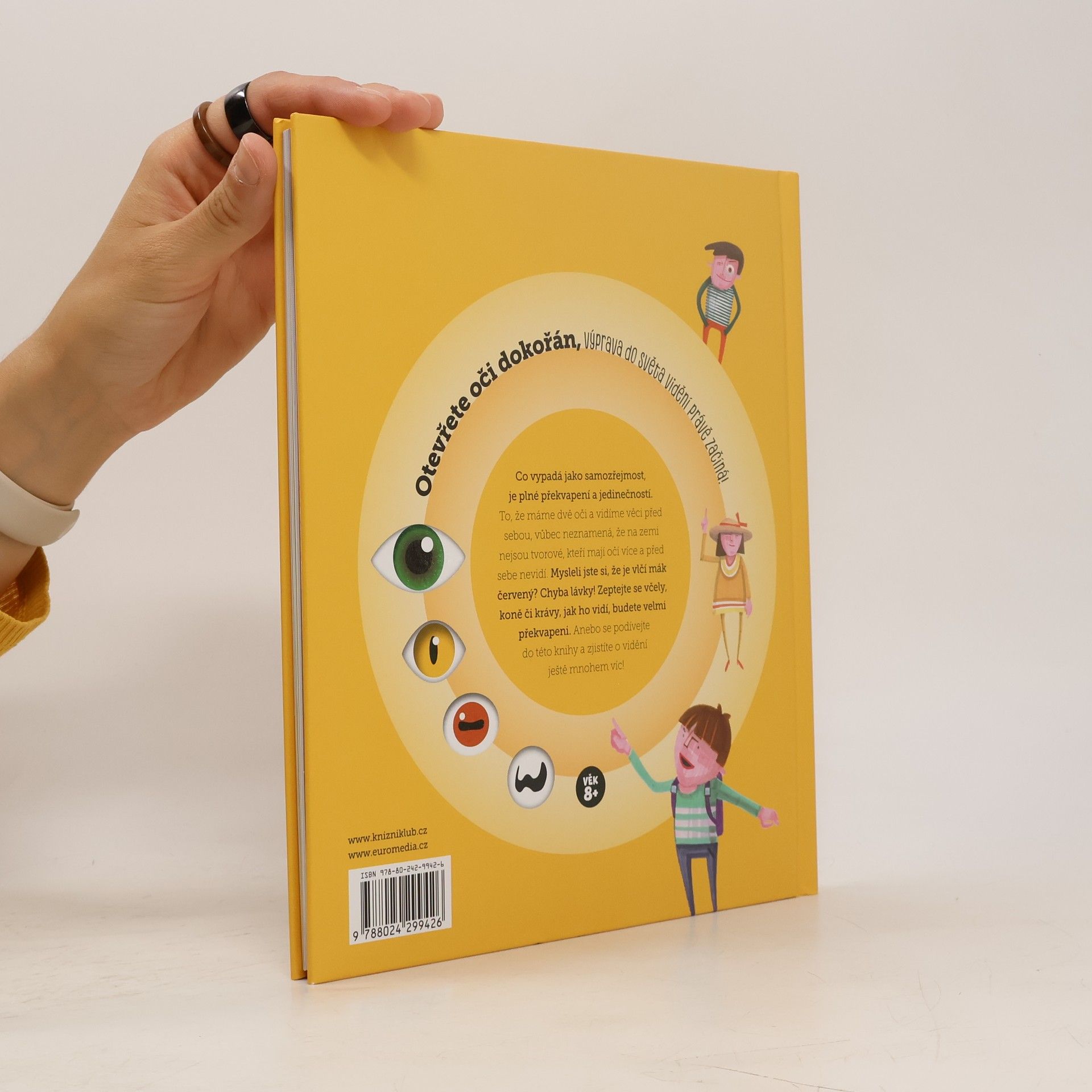 Otevřete oči dokořán, výprava do světa vidění právě začíná! To, co vypadá jako samozřejmost, je plné překvapení a jedinečností. To, že máme dvě oči a vidíme věci před sebou, vůbec neznamená, že na zemi nejsou tvorové, kteří mají očí více a před sebe nevidí. Mysleli jste si, že je vlčí mák červený? Chyba lávky! Zeptejte se včely, koně či krávy, jak ho vidí… budete velmi překvapeni. Anebo se podívejte do této knihy a zjistíte o vidění ještě mnohem víc!