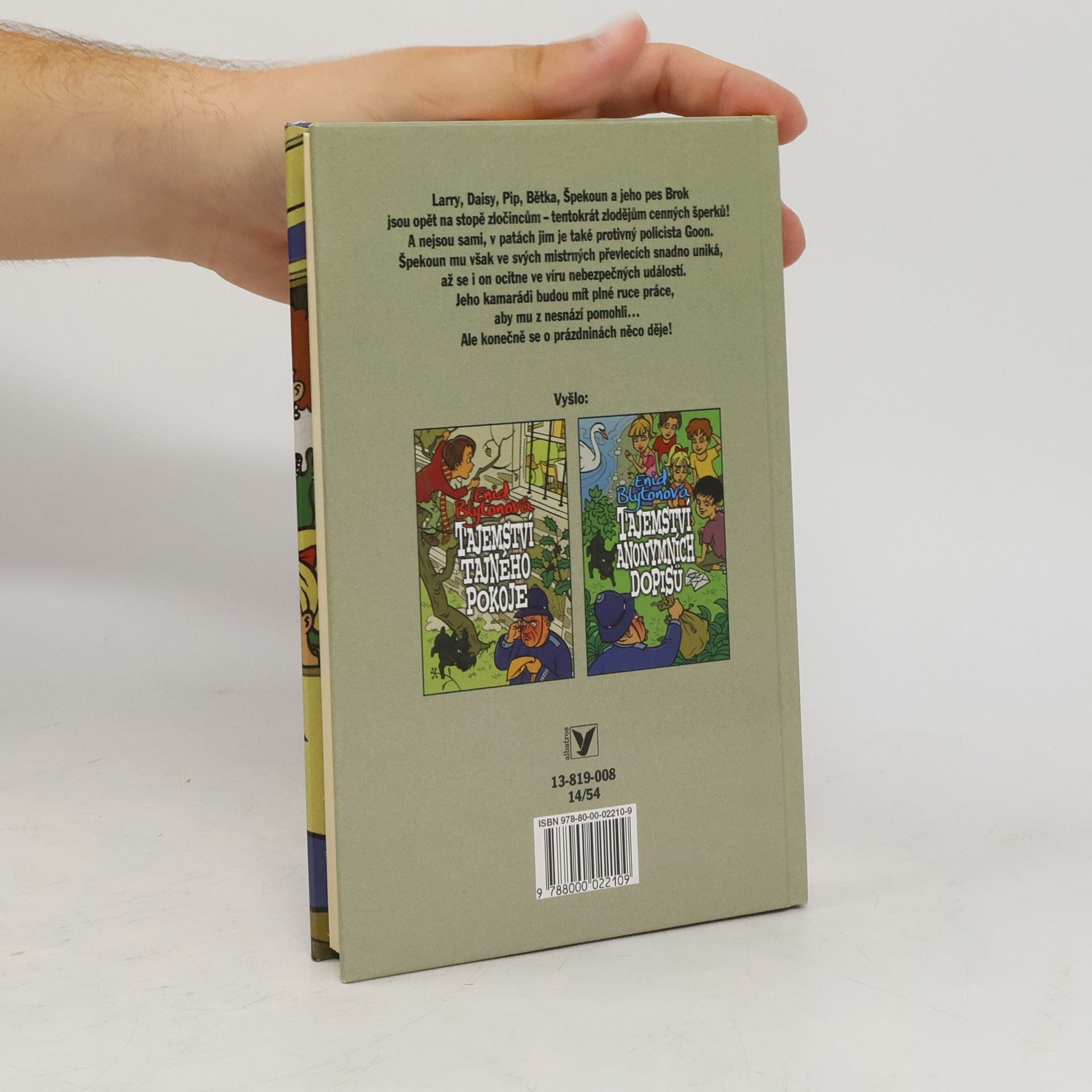 Už pátý příběh – páté dobrodružství našich známých Pipa, Bětky, Larryho, Daisy, Špekouna a jeho psa Broka. Opět jsou na stopě zločincům -- tentokrát zlodějům cenných šperků. A nejsou sami, v patách jim je protivný policista Goon. Špekoun mu však v svých mistrných převlecích snadno uniká, až se i on octne ve víru událostí. Jeho kamarádi budou mít plné ruce práce, aby mu z nesnází pomohli…Ale konečně se o prázdninách něco děje!
