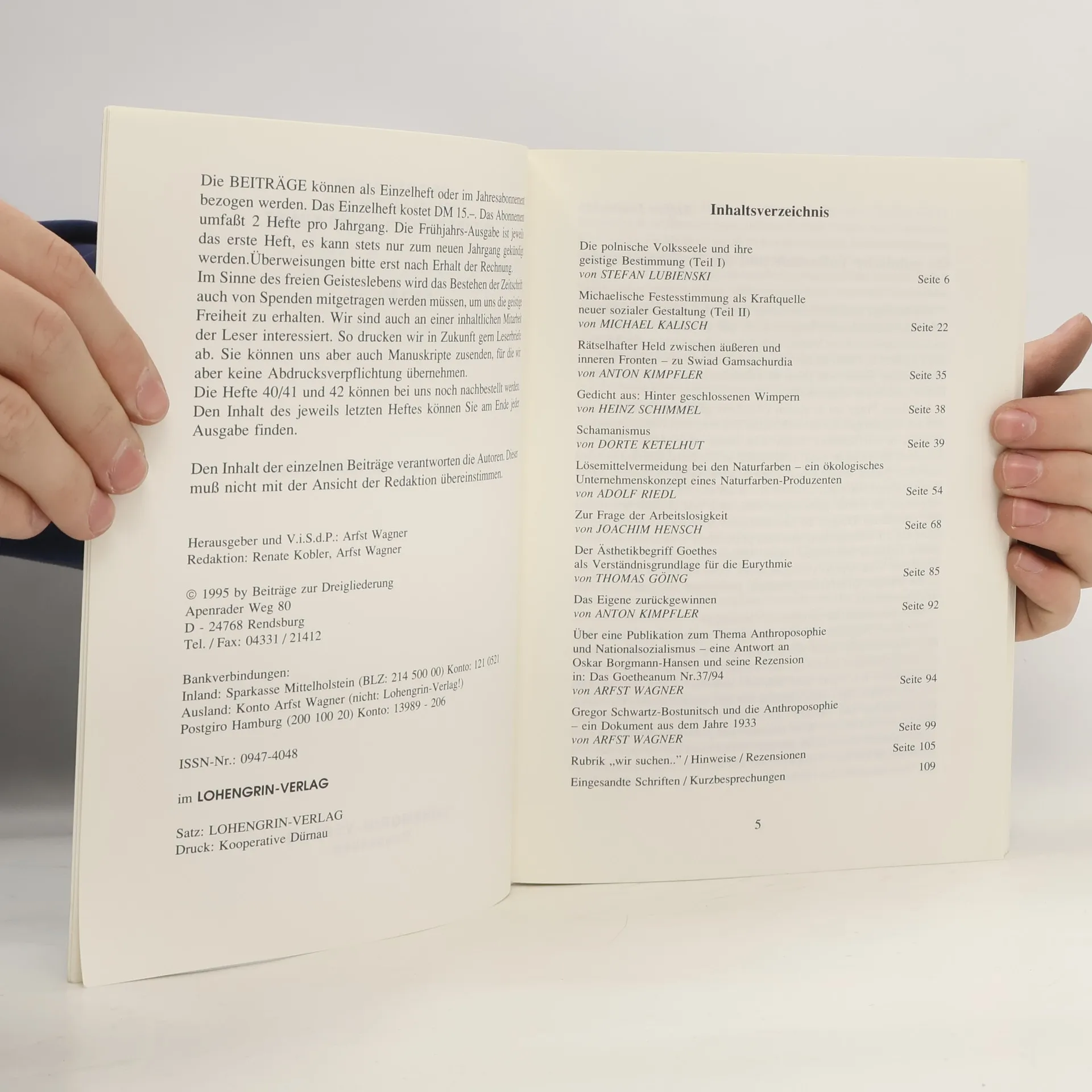 Beiträge zur Dreigliederung, Anthroposophie und Kunst, Arfst Wagner