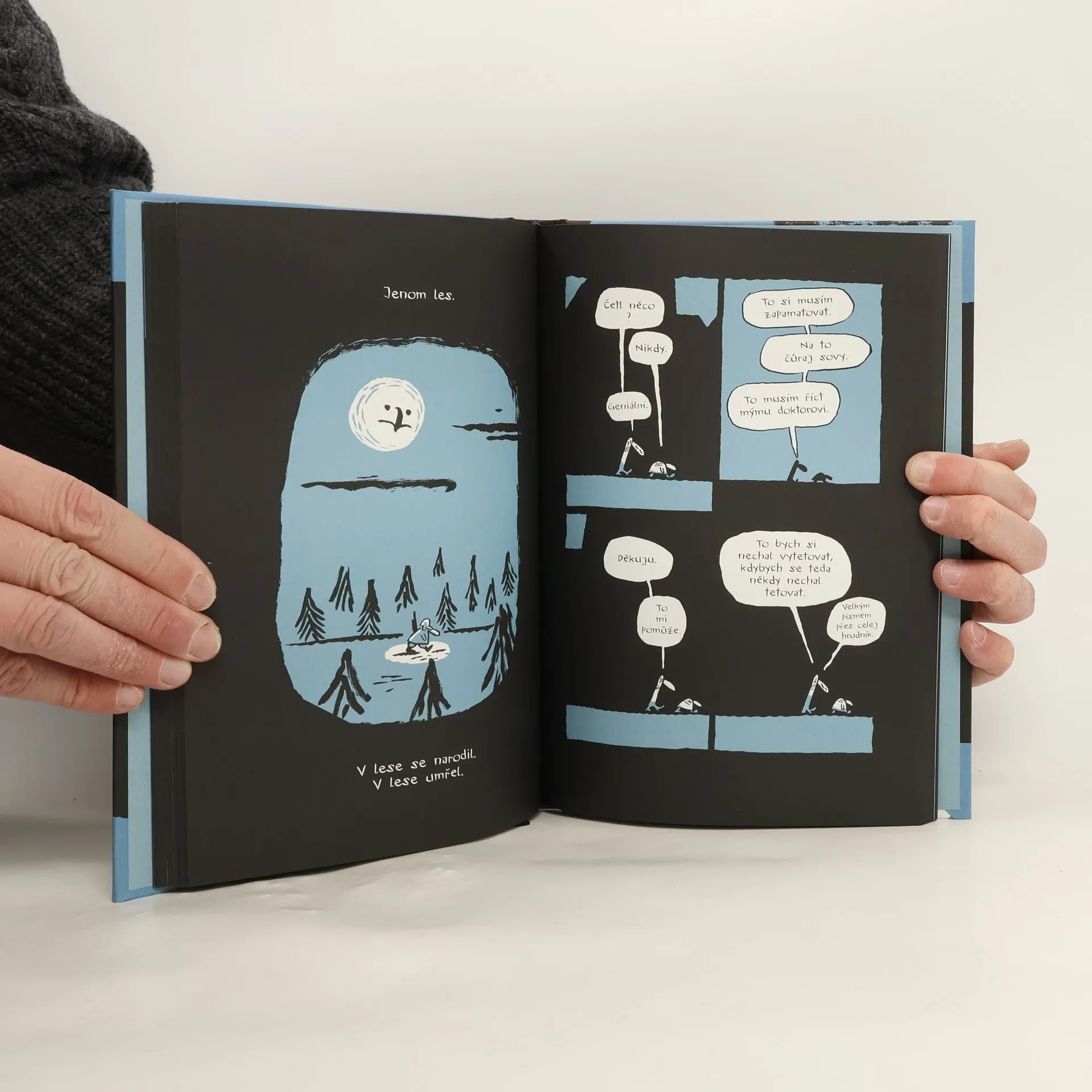 Jedna noc, jedno město a dva kamarádi, kteří putují z jedné pražské hospody do druhé. Krok za krokem, pivo za pivem a příběh za příběhem. Dojde na jednu dávnou lásku, jednu nepovedenou svatbu a jeden ještě víc nepovedený výlet do Alp. A také na sovy, zubry a dějiny, které nás uprostřed Evropy stále drží v hrsti.V roce 2022 byla tato kniha nominována na Cenu Maxe a Moritze za nejlepší německojazyčný komiks.