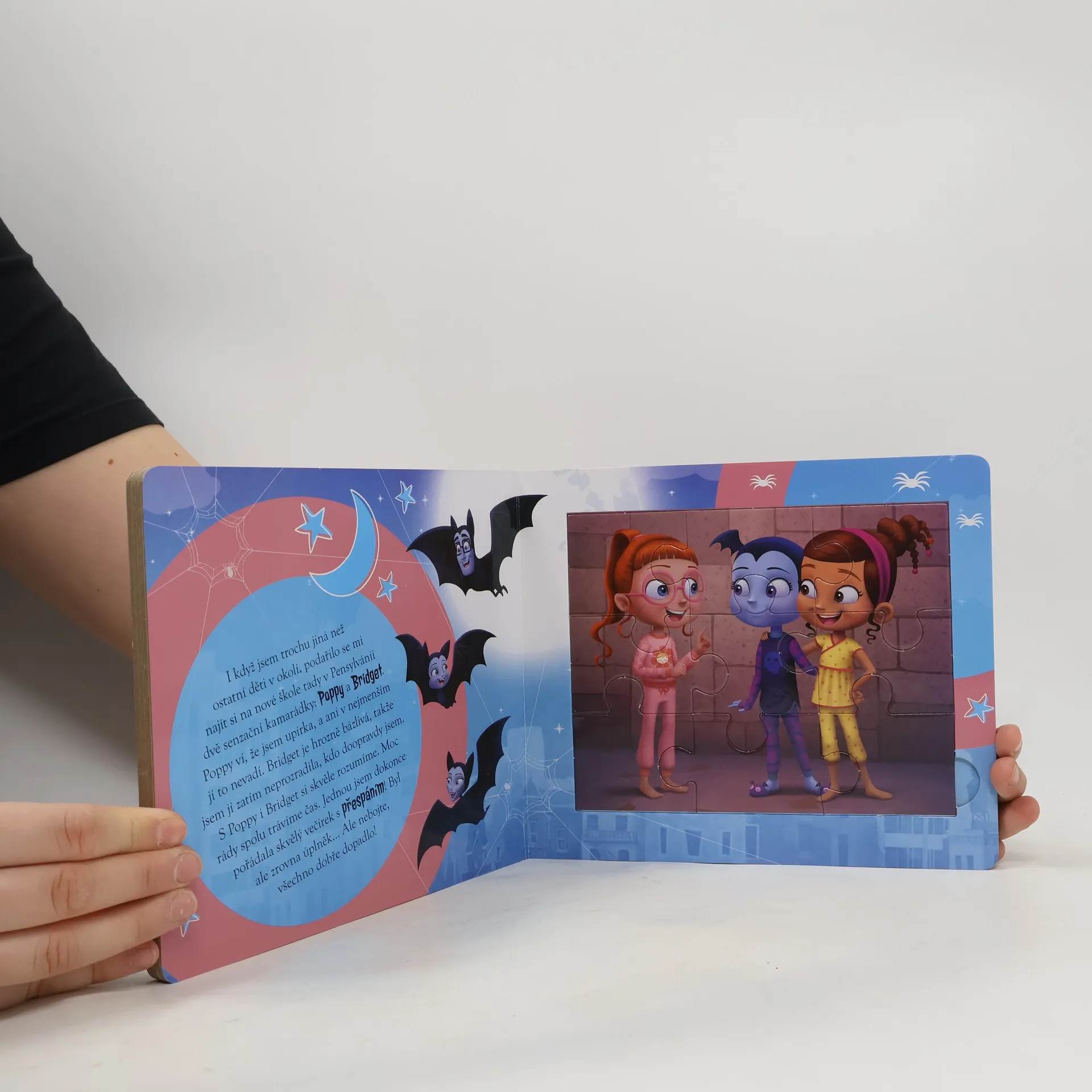 Seznamte se s malou upírkou Vampirinou s netopýřími culíky a její rodinou, se kterou se Vee přistěhovala z Transylvánie! V této knížce najdete kromě bezva čtení i tři krásná barevná puzzle s velkými dílky, která dětem pomohou rozvíjet fantazii a procvičit motorické dovednosti i prostorové vnímání.