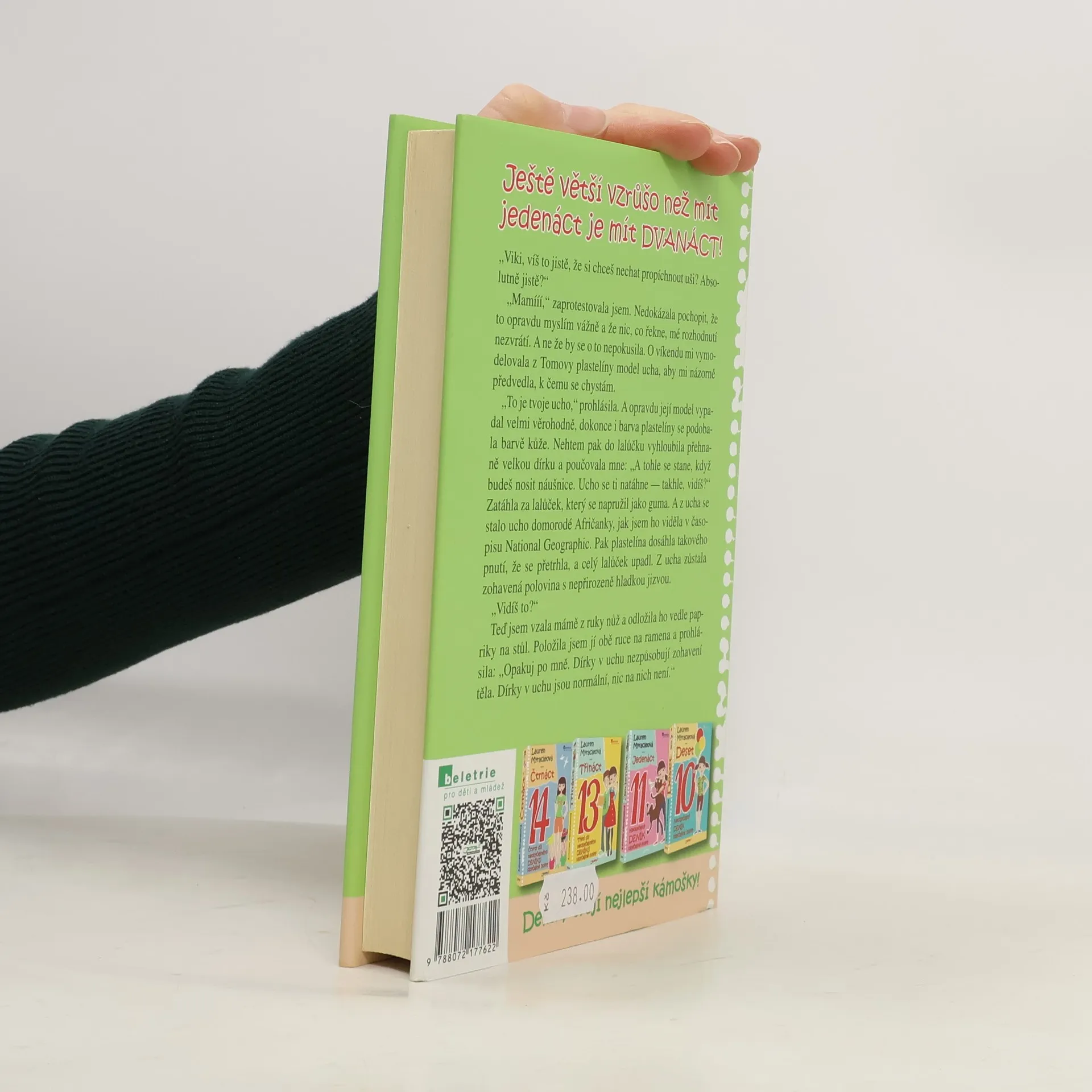 Ještě větší vzrůšo než mít jedenáct je mít DVANÁCT! Viki, veselá, milá a vtipná hrdinka úspěšné knihy JEDENÁCT, je zase o rok starší a dospělejší. Ovšem její někdy spíše úsměvné, jindy vážnější trable a nedorozumění s rodiči, sourozenci, ale hlavně kamarádkami současnými i bývalými a těmi, s nimiž se nikdy přátelit nehodlá, jí život rozhodně neulehčují. Viki zjišťuje, jak hořce chutná zrada ze strany blízkého člověka, ale zakouší i stud nad svým chováním, když i ona dokáže ublížit. A navíc si musí zvyknout na spoustu novinek, jako jsou například lesky na rty, noví spolužáci, letní tábory, ženské prádlo a hlavně KLUCI!