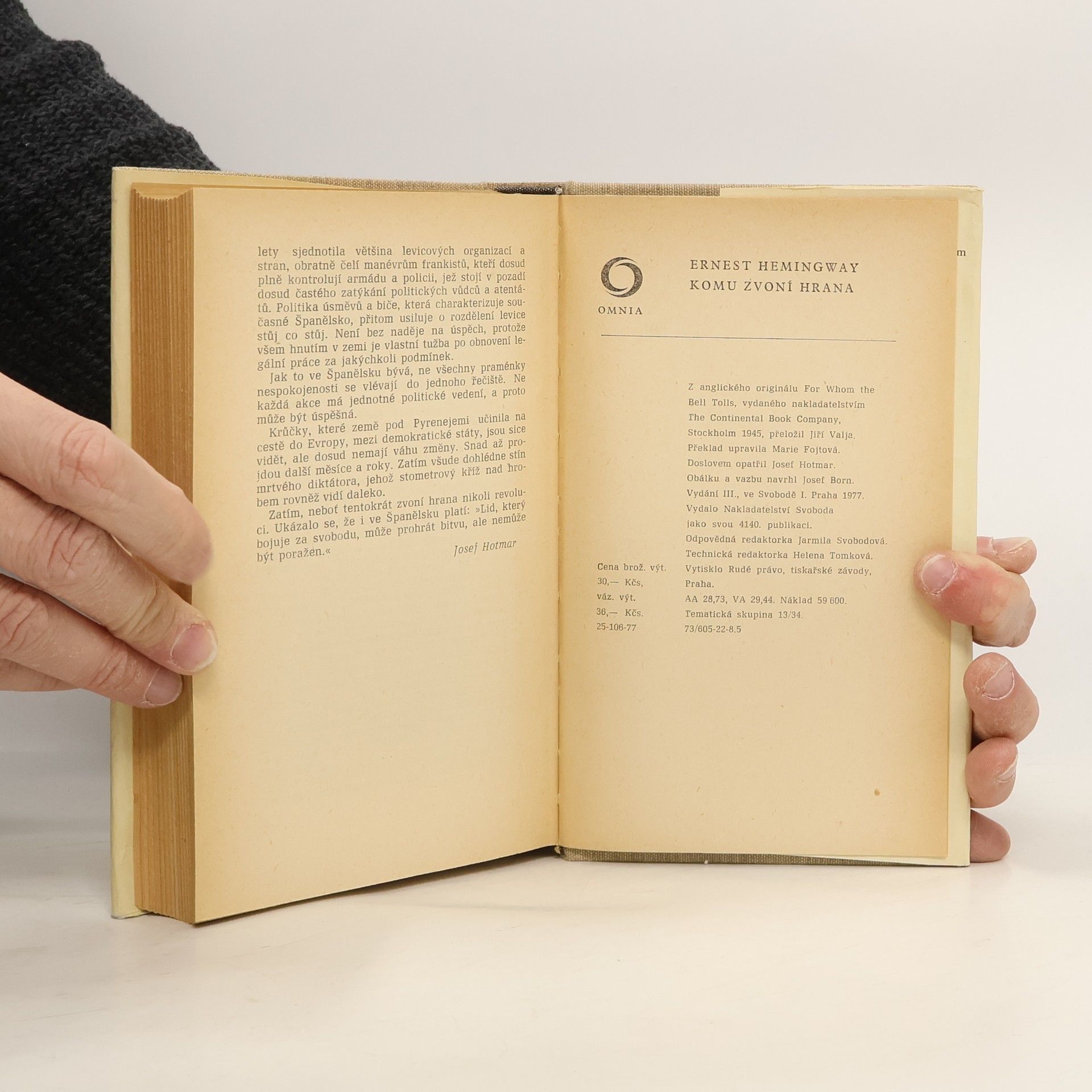 Komu zvoní hrana, Ernest Hemingway, Jiří Valja