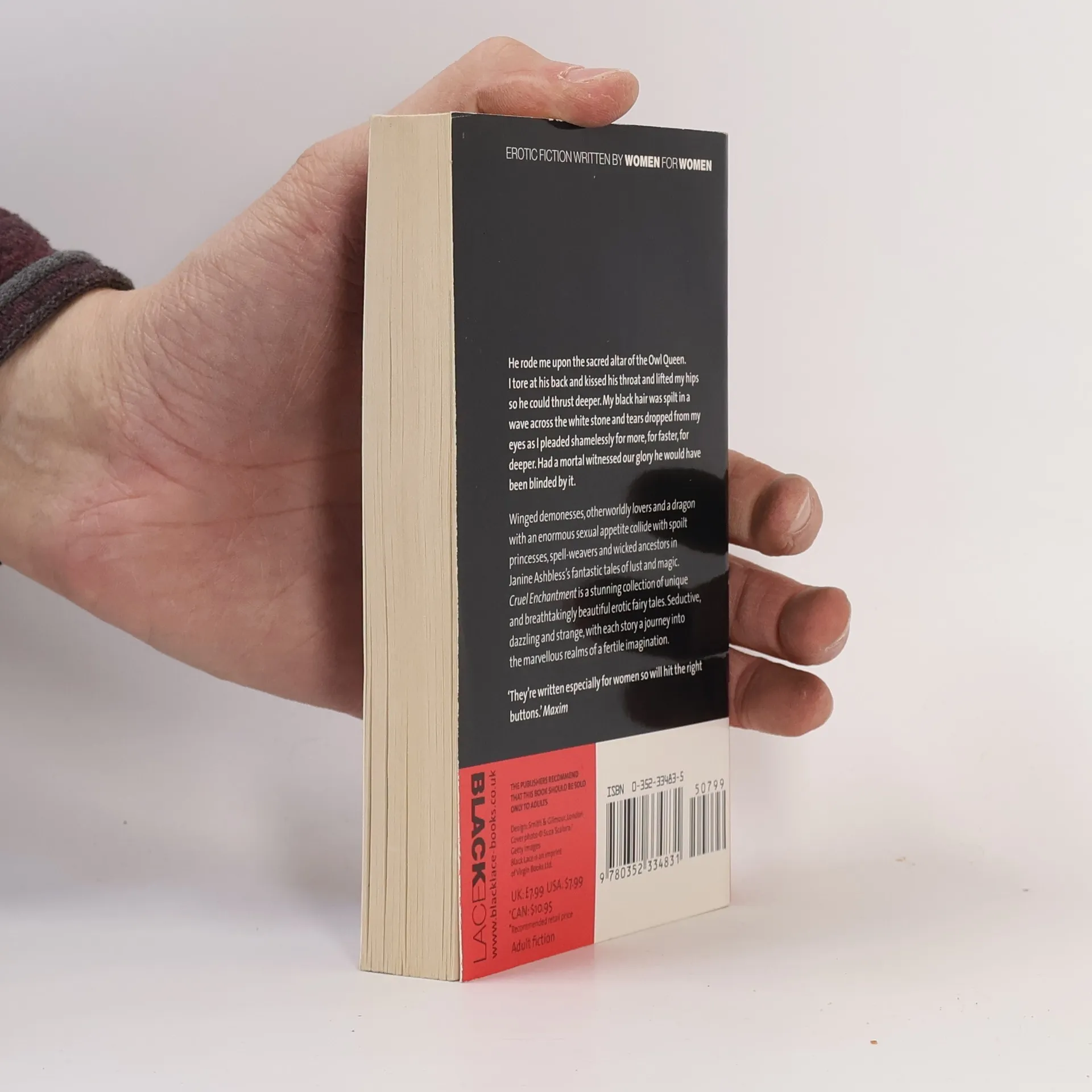 He rode me upon the sacred altar of the Owl Queen. I tore at his back and kissed his throat and lifted my hips so he could thrust deeper. My black hair was split in a wave across the white stone and tears dropped from my eyes as I pleaded shamelessly for more, for faster, for deeper. Had a mortal witnessed our glory he would have been blinded by it. Winged demonesses, otherworldly lovers and a dragon with an enormous sexual appetite collide with spoilt princesses, spell-weavers and wicked ancestors in Janine Ashbless's fantastic tales of lust and magic. Cruel Enchantment is a stunning collection of unique and breathtakingly beautiful erotic fairy tales. Seductive, dazzling and strange, with each story a journey into the marvellous realms of a fertile imagination.