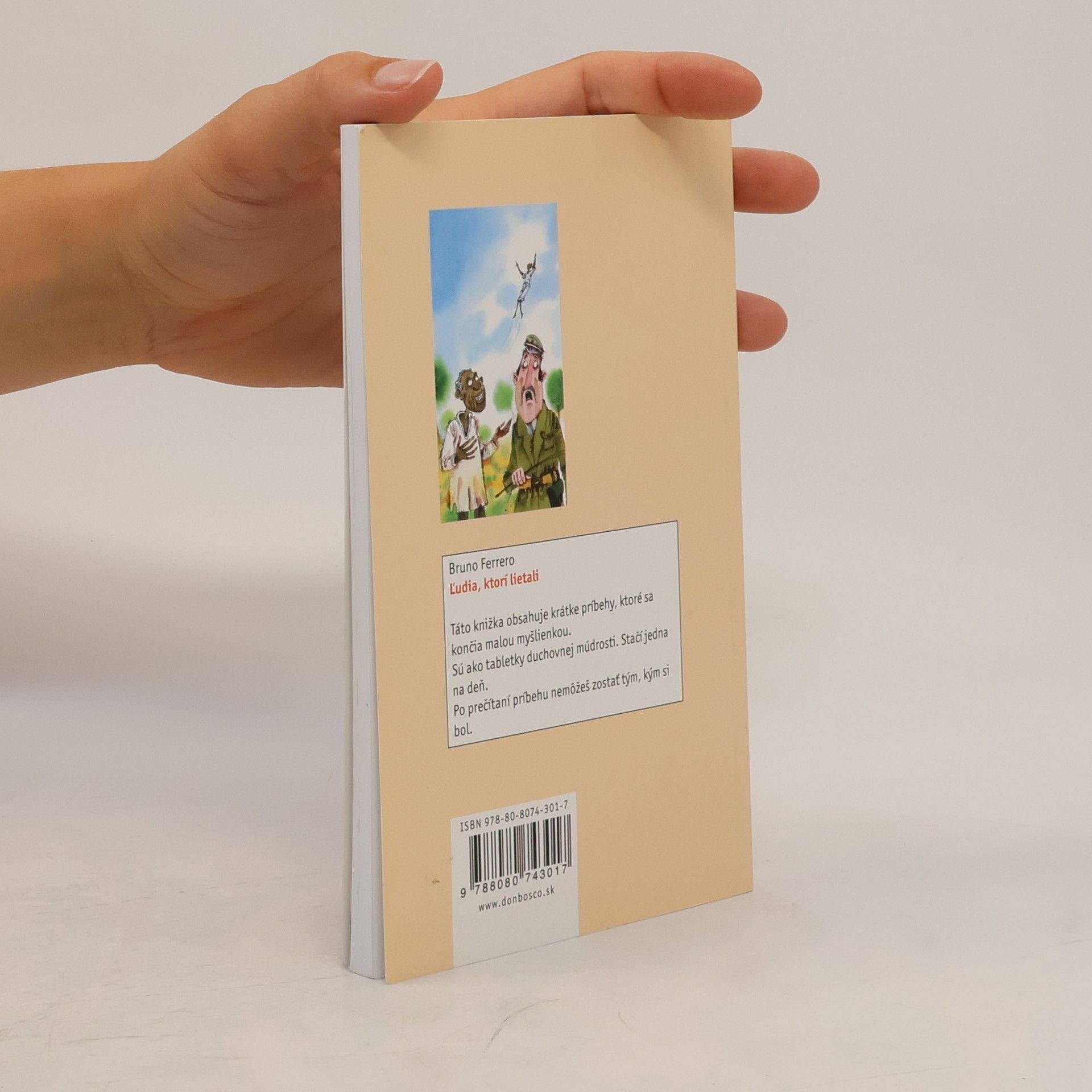 Každý z nás zažil občas deň, keď sa mu nechcelo nič iné, len zaliezť do postele a neukázať sa svetu na oči. Deň pod psa. Deň, kedy sa nič nedarí. Knižočka Ľudia, ktorí lietali je ďalšou zbierkou veselých príbehov s krásnou myšlienkou od Bruna Ferrera, ktorá dokáže rozjasniť každý deň. S príbehom na povzbudenie môžeme začať naše ráno s vedomím, že Boh je všade a miluje nás.