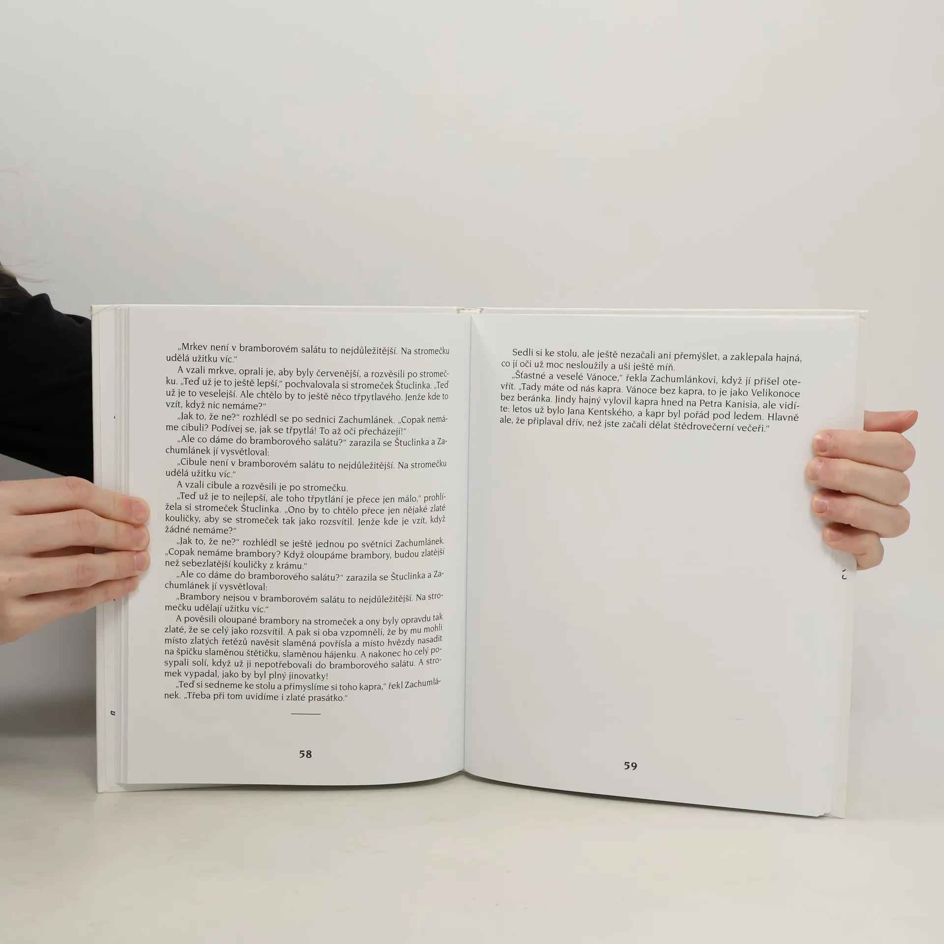 Zimní příběh o dvou šikovných dětech, které si dokáží samy poradit, když kmotřínek, který se o ně stará, nečekaně onemocní, protože mu došel česnek, a musí do nemocnice. Štuclinka se Zachumlánkem občas s obtížemi, ale vždy vtipně a se spoustou fantazie vyřeší, jak zateplit pumpu, jak zachránit dusící se kapry, jak porazit soušku, jak sestrojit dřevošmik, jak rozveselit kmotřínka mikulášskou nadílkou i jak napéct cukroví. Když je toho na ně moc, pomáhá jim pejsek Matlafousek, hajný s hajnou, která nosí v hlavě snad všechny svaté z kalendáře, i hodný pan doktor se sestřičkou. Nenapodobitelné vypravěčské umění Františka Nepila v tomto půvabném, laskavém, nápaditém a hlavně ryze českém příběhu potěší nejen děti, ale i jejich rodiče a prarodiče.