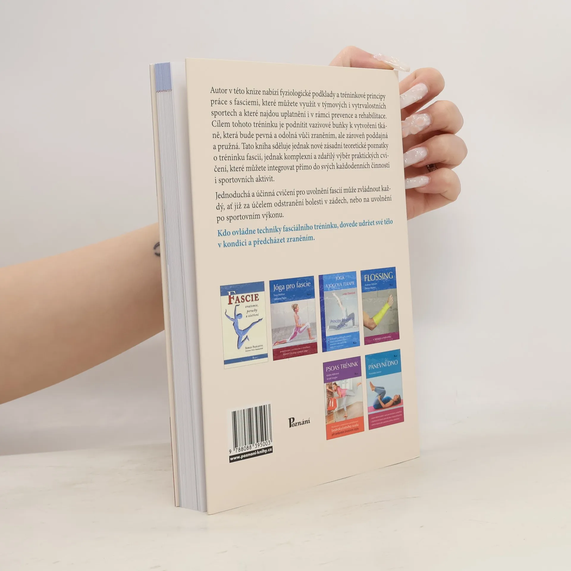 Ještě nedávno byly fascie – síť vazivové tkáně rozprostřená po celém těle – považovány pouze za obalové orgány. Díky vědeckým objevům posledních let se však staly středem pozornosti oborů sportování pro zdraví a nauk o pohybu. Nezáleží na tom, zda jde o tenisový úder, golfový švih nebo cviky pro zdravá záda – při všech těchto pohybech hraje důležitou roli fungující fasciální síť. A dobrá zpráva navíc: Fascie lze „trénovat“! Nejnovější výsledky mezinárodního výzkumu fascií vedou k možnostem konkrétní aplikace v rekreačním a profesionálním sportu i v oblasti rehabilitace a prevence. Tato jednoduchá a zároveň účinná cvičení pro uvolnění fascií může zvládnout každý, ať již za účelem odstranění bolesti v zádech, nebo vrcholného sportovního výkonu. Kdo ovládne techniky fasciálního tréninku, dovede udržet své tělo v kondici a předcházet zraněním.