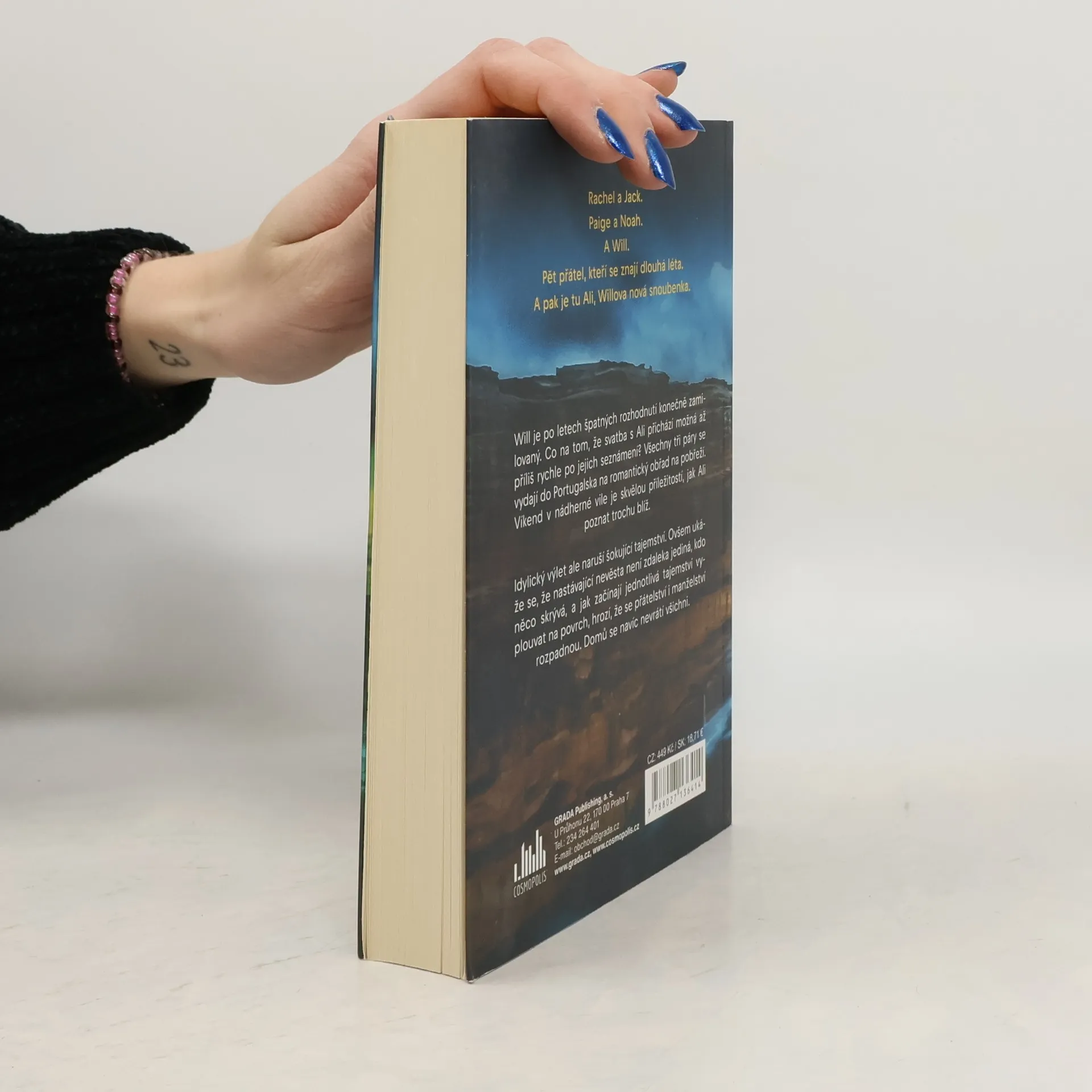 Rachel a Jack.Paige a Noah.A Will.Pět přátel, kteří se znají dlouhá léta.A pak je tu Ali, Willova nová snoubenka.Will je po letech špatných rozhodnutí konečně zamilovaný. Co na tom, že svatba s Ali přichází možná až příliš rychle po jejich seznámení? Všechny tři páry se vydají do Portugalska na romantický obřad na pobřeží. Víkend v nádherné vile je skvělou příležitostí, jak Ali poznat trochu blíž.7Idylický výlet ale naruší šokující tajemství. Ale ukáže se, že nastávající nevěsta není zdaleka jediná, kdo něco skrývá, a jak začínají jednotlivá tajemství vyplouvat na povrch, hrozí, že se přátelství i manželství rozpadnou. Domů se navíc nevrátí všichni.