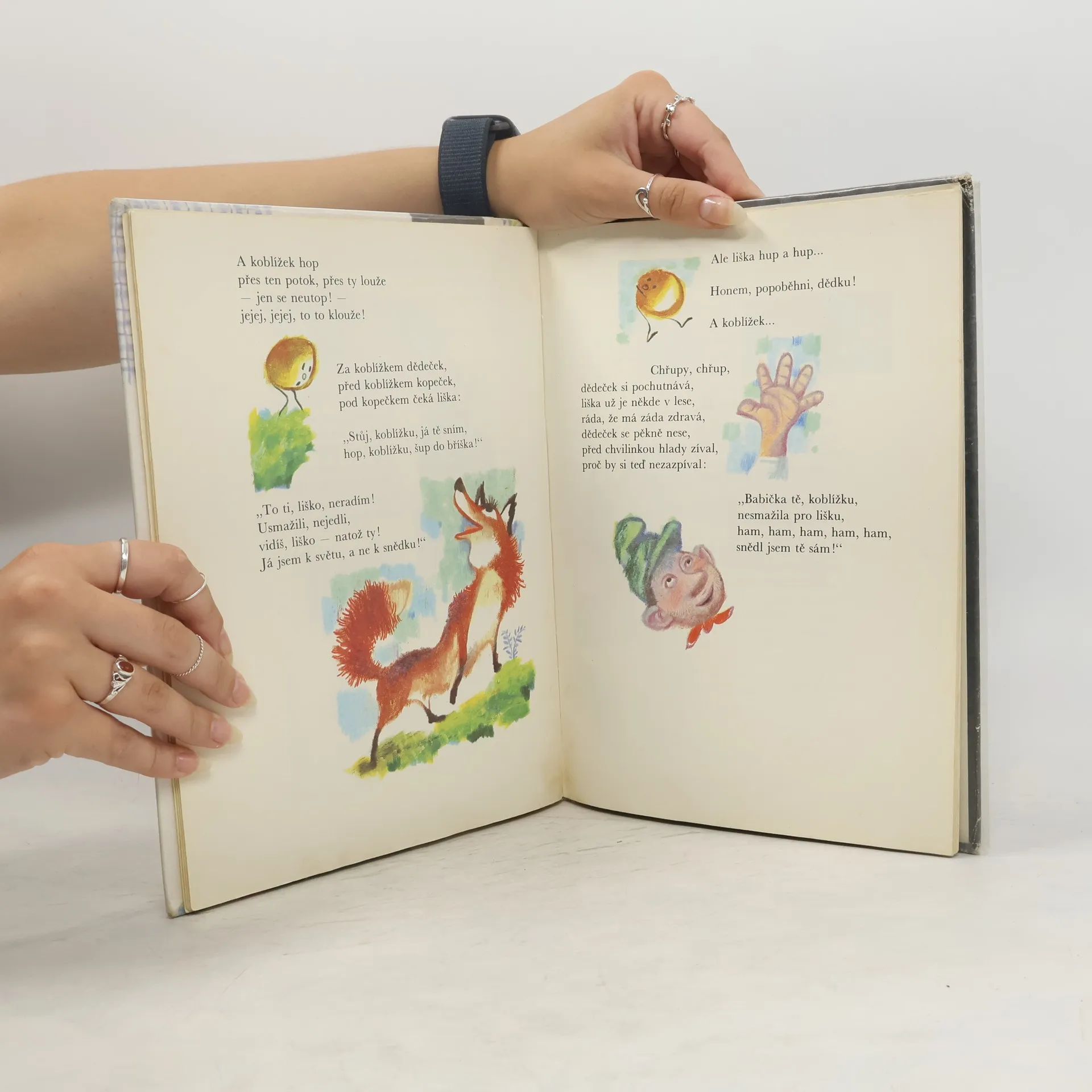 Známé pohádky přebásnil nádherným jazykem František Hrubín a vznikla půvabná knížka pro nejmenší děti. V hravých a dobře zapamatovatelných verších se děti skamarádí s Červenou karkulkou, Budulínkem, Otesánkem, Palečkem i Smolíčkem, ochutnají Perníkovou chaloupku, Dědečkův koblížek i Velikou řepu, proběhnou se s kuřátkem v obilí a se zvířátky v začarovaném lese. Půvabná a nestárnoucí knížka, po níž je stále sháňka, je vhodná k předčítání i pro první samostatné čtení.