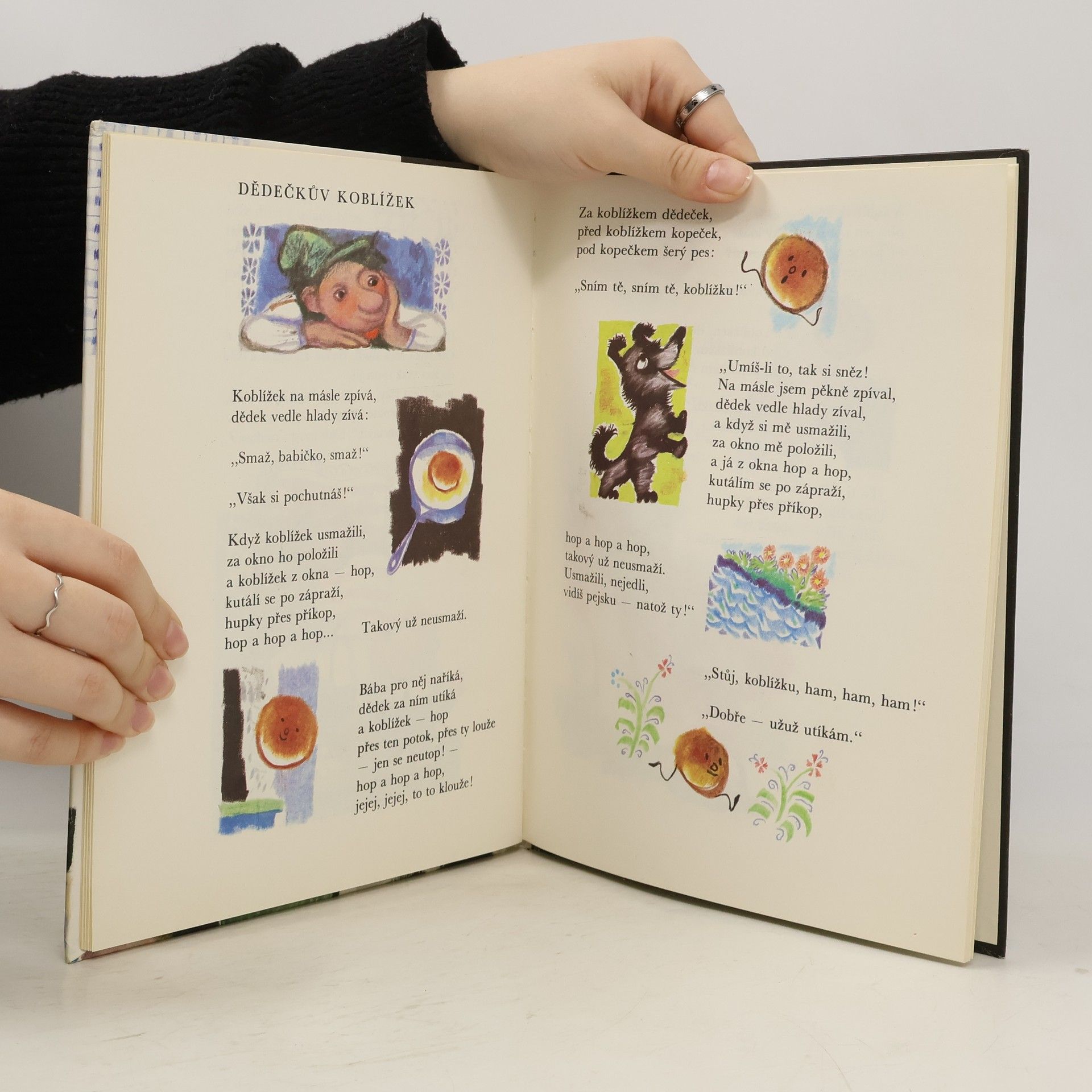 Známé pohádky přebásnil nádherným jazykem František Hrubín a vznikla půvabná knížka pro nejmenší děti. V hravých a dobře zapamatovatelných verších se děti skamarádí s Červenou karkulkou, Budulínkem, Otesánkem, Palečkem i Smolíčkem, ochutnají Perníkovou chaloupku, Dědečkův koblížek i Velikou řepu, proběhnou se s kuřátkem v obilí a se zvířátky v začarovaném lese. Půvabná a nestárnoucí knížka, po níž je stále sháňka, je vhodná k předčítání i pro první samostatné čtení.