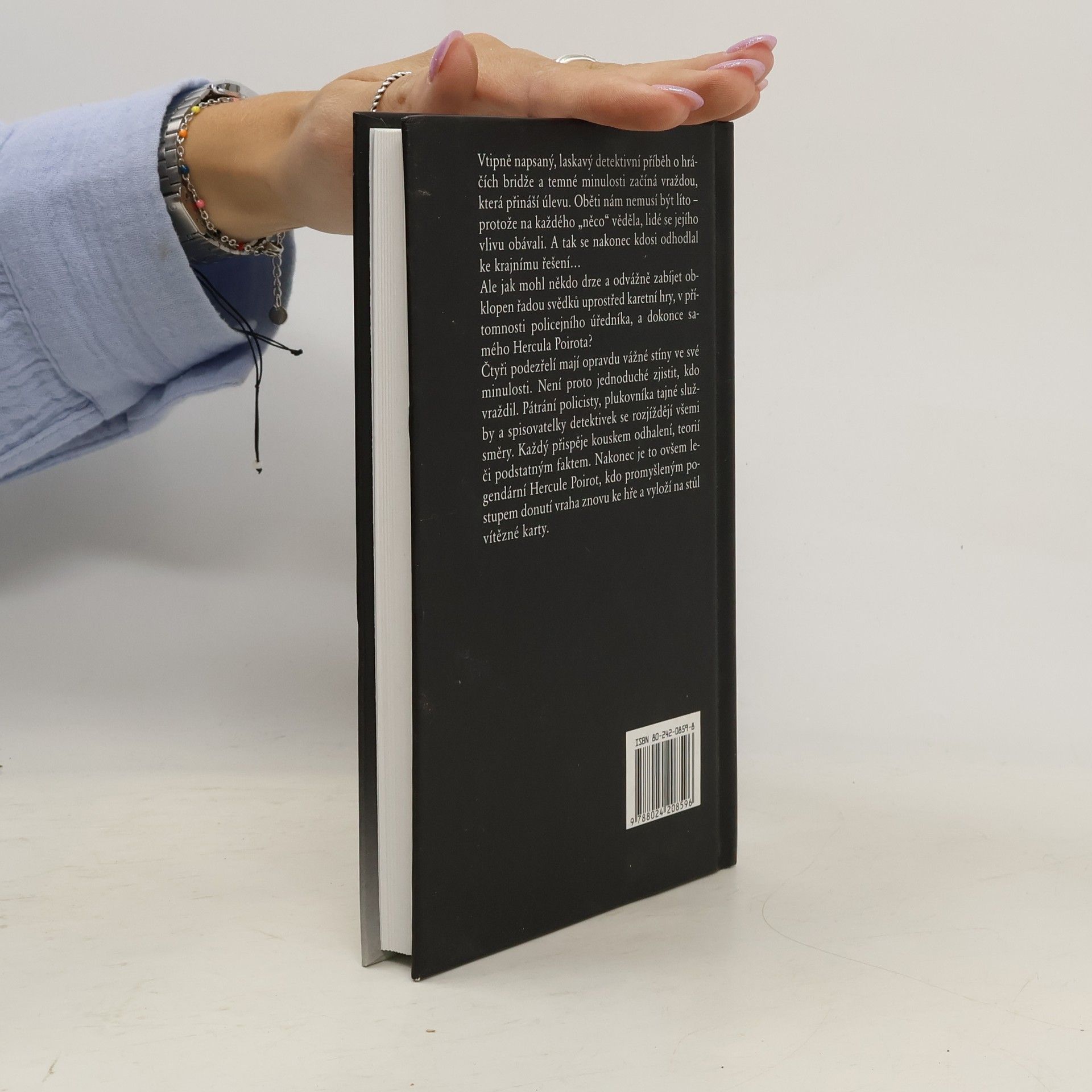 Vtipně napsaný, laskavý detektivní příběh o hráčích bridže a temné minulosti začíná vraždou, která přináší úlevu. Oběti nám nemusí být líto – protože na každého „něco“ věděla, lidé se jejího vlivu obávali. A tak se nakonec kdosi odhodlal až ke krajnímu řešení… Ale jak mohl někdo drze a odvážně zabíjet, obklopen řadou svědků, uprostřed karetní hry, v přítomnosti policejního úředníka, a dokonce samého Hercula Poirota? Čtyři podezřelí mají opravdu vážné stíny ve své minulosti. Není proto jednoduché zjistit, kdo vraždil kdysi i nyní. Pátrání policejního úředníka, plukovníka tajné služby a spisovatelky detektivek se rozjíždějí všemi směry. Každý přispěje kouskem odhalení, teorií či podstatným faktem. Nakonec je to ovšem Hercule Poirot, kdo promyšleným postupem donutí vraha znovu ke hře a vyloží na stůl vítězné karty.... celý text