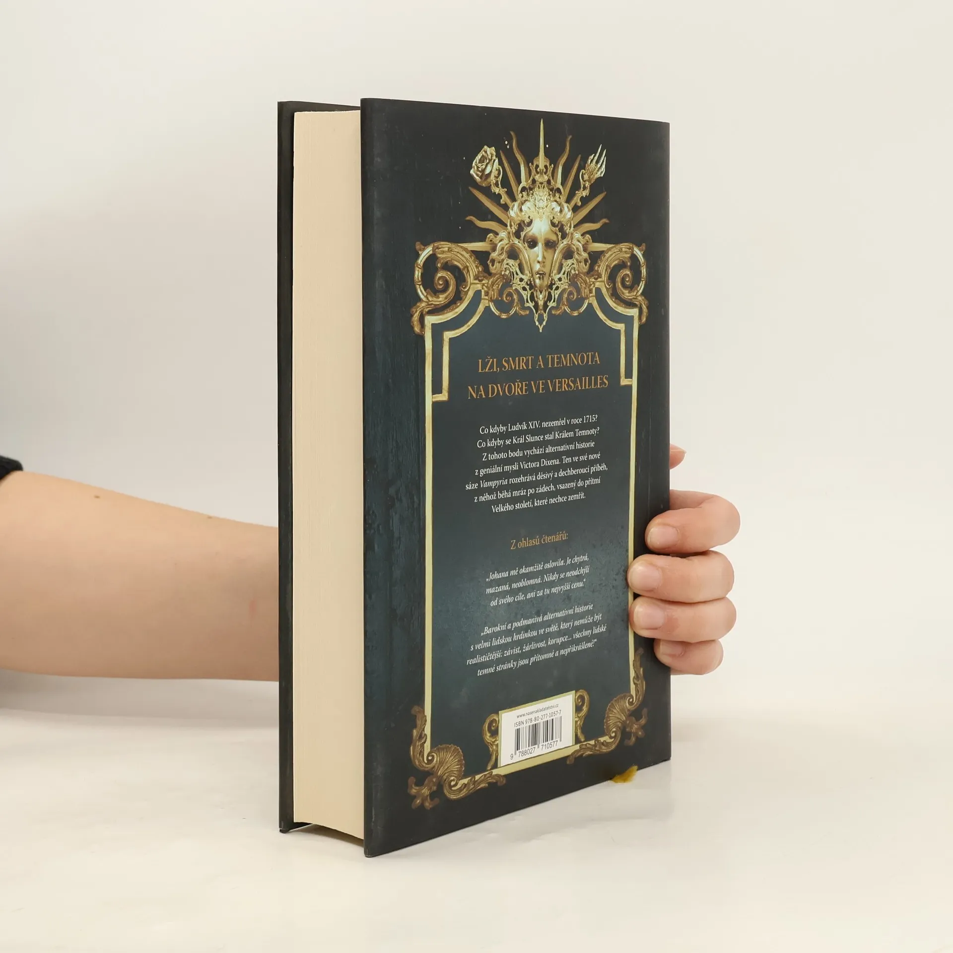 ,,Ve Versailles se rozvineš jako exotická květina. Vampýři v paláci šílí po všem, co není všední. Ale pozor: Dvůr Temnoty má svá pravidla, své smrtící nástrahy, a i za tu sebemenší chybu se platí krví…“ V roce Spásy 1715 se Král Slunce nechal transmutovat v nesmrtelného vampýra, a stal se Králem Temnoty. Od té doby despoticky vládne Francii i jejím místokrálovstvím, které nadobro ustrnuly ve Velkém století. Temnota postupně ovládá celý svět. Veškerý lid je spoután okovy a držen v hrůze. Pro nakrmení vampýrů, kteří tvoří nejvyšší šlechtu země, navíc doslova prolévá krev. Tři sta let po Králově transmutaci je Johana vytržena ze své neurozené rodiny a vržena do školy ve Versailles, která připravuje mladé šlechtice na život u Dvora. Bude čelit krutosti živých-mrtvých, intrikám spolužáků i množícím se nestvůrnostem mezi zdmi královského paláce. Johana má ovšem tajný úkol. Co všechno bude ochotna mu obětovat a podaří se jí ho nakonec splnit? Victor Dixen ve své nové sáze Vampyria rozehrává dechberoucí alternativní historii, ze které běhá mráz po zádech.