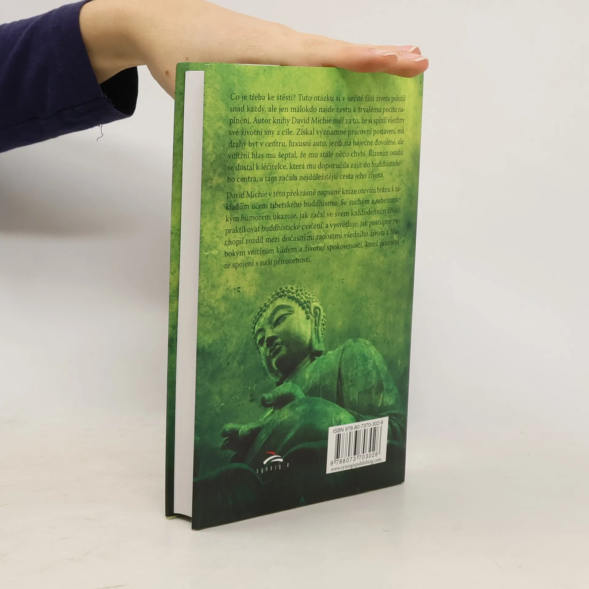 Co je třeba ke štěstí? Tuto otázku si v určité fázi života položil snad každý z nás, ale jen málokdo najde cestu k trvalému naplnění. Autor knihy David Michie měl za to, že si splnil všechny své životní sny a cíle – významné pracovní postavení, drahý byt v centru velkoměsta, luxusní auto, báječné dovolené - ale vnitřní tichý hlas mu říkal, že mu stále něco chybí a jeho život ho nenaplňoval. Řízením osudu se dostal k léčitelce, která ho poslala do místního buddhistického centra. Tam začala nejdůležitější cesta jeho života. David Michie v této jednoduché překrásně napsané knize otevírá bránu k základům učení tibetského buddhismu. Se suchým a sebeironickým humorem nám ukazuje, jak začal buddhistické cvičení integrovat do svého každodenního života, a vysvětluje, jak postupně pochopil rozdíl mezi dočasnými radostmi všedního života a hlubokým dobrým pocitem a vnitřním klidem, který pramení ze spojení s naší vnitřní přirozeností.