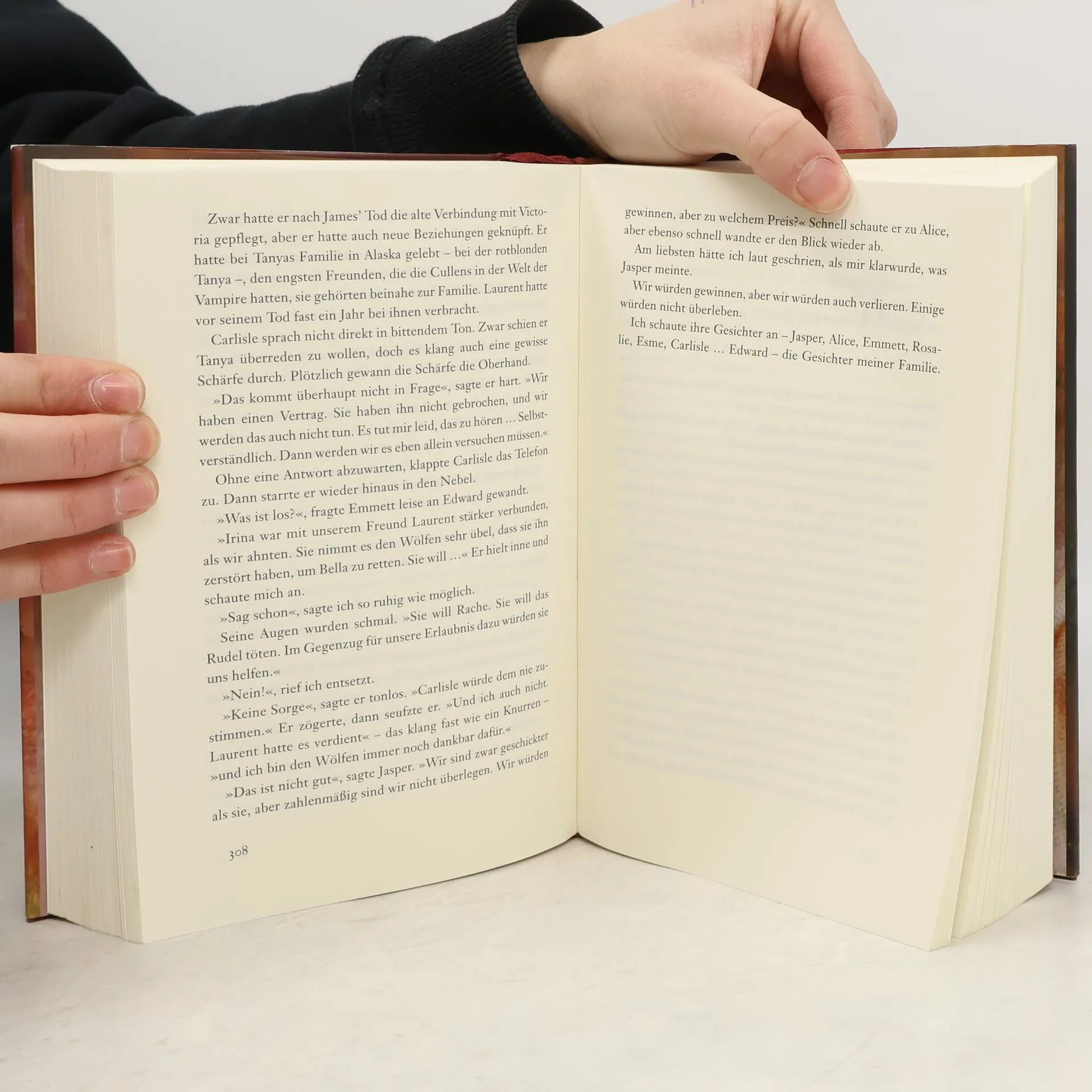 Bellas Leben ist in Gefahr. Seattle wird von einer Reihe rätselhafter Mordfälle erschüttert, ein offensichtlich blutrünstiger Vampir sinnt auf Rache. Und seine Spuren führen zu Bella. Aber damit nicht genug: Nachdem sie wieder mit Edward zusammen ist, muss sie sich zwischen ihrer Liebe zu ihm und ihrer Freundschaft mit Jacob entscheiden - wohl wissend, dass sie damit den uralten Kampf zwischen Vampiren und Werwölfen neu entfachen könnte ... „Bella?“ Das war Edwards Stimme hinter mir. Als ich mich umdrehte, sprang er leichtfüßig die Verandatreppe hinauf, die Haare vom Rennen zerzaust. Sofort nahm er mich in die Arme und küsste mich, genau wie vorhin auf dem Parkplatz. Der Kuss erschreckte mich. Edward wirkte so nervös, so angespannt, als er seine Lippen auf meine presste - als hätte er Angst, dass uns nicht mehr genug Zeit bliebe. Der Tag der Entscheidung rückt immer näher - was wird Bella wählen: Leben oder Tod?
