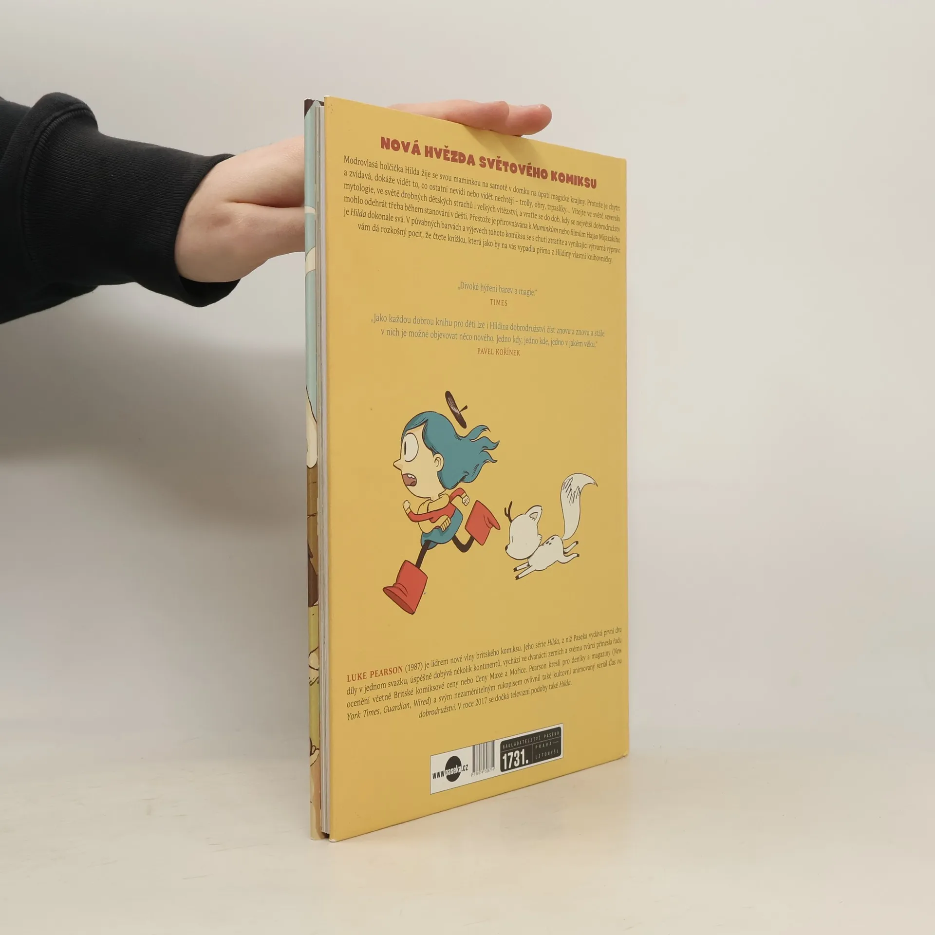 Modrovlasá holčička Hilda žije se svou maminkou na samotě v domku na úpatí magické krajiny. Protože je chytrá a zvídavá, dokáže vidět to, co ostatní nevidí nebo vidět nechtějí - trolly, obry, trpaslíky… Vítejte ve světě severské mytologie, drobných dětských strachů i velkých vítězství, světě, který nás láká, abychom se v něm zas a znovu zabydlovali a vraceli se do dob, kdy se největší dobrodružství mohlo odehrát během stanování v dešti. Přestože je přirovnávána k Muminkům nebo filmům Hajao Mijazakiho, je Hilda dokonale svá. Původně vznikla pro mladší publikum, ale nakonec si podmanila čtenáře bez rozdílu věku. Hilda je komiks, v jehož půvabných barvách a výjevech se s rozkoší ztratíte a který se právem stal klasikou 21. století.