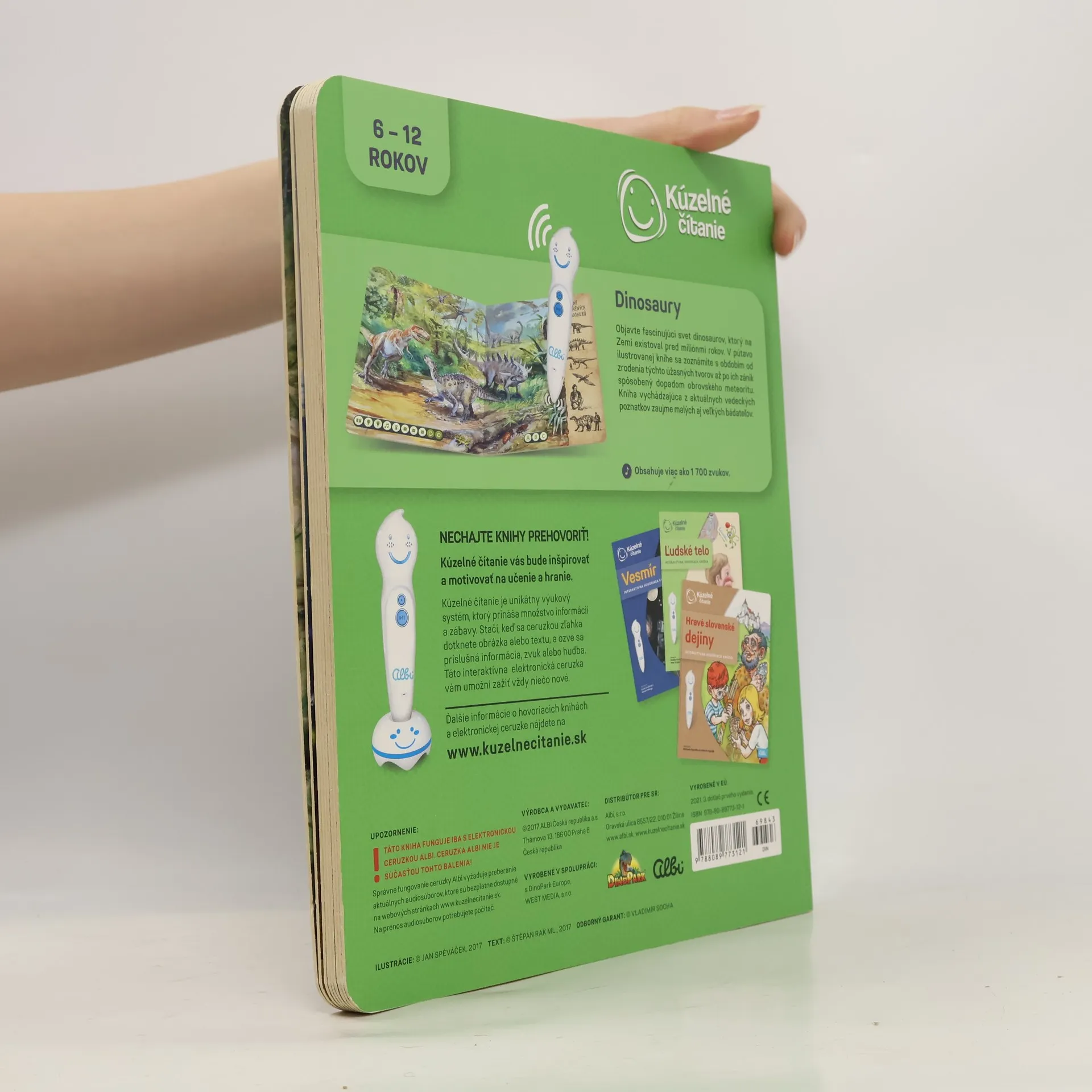 Kniha Dinosaury z edície Kúzelné čítanie prevedie čitateľov od zrodu prvých dinosaurov cez druhohory, kedy dinosaury ovládli svet a dosiahli gigantické rozmery, až k ich zániku, ktorý spôsobil dopad obrovského meteoritu. Kniha deťom ukáže ako dinosaury vyzerali podľa najaktuálnejších vedeckých poznatkov vrátane zvukov, ktoré mohli vydávať. Osloví tak najmenšie deti od 6 rokov, ako aj staršie deti, ktoré sa už aktívne zaujímajú o prehistorický svet. Knižka obsahuje viac ako 1700 zvukov a textov. Knižku nahovoril Miroslav Noga.