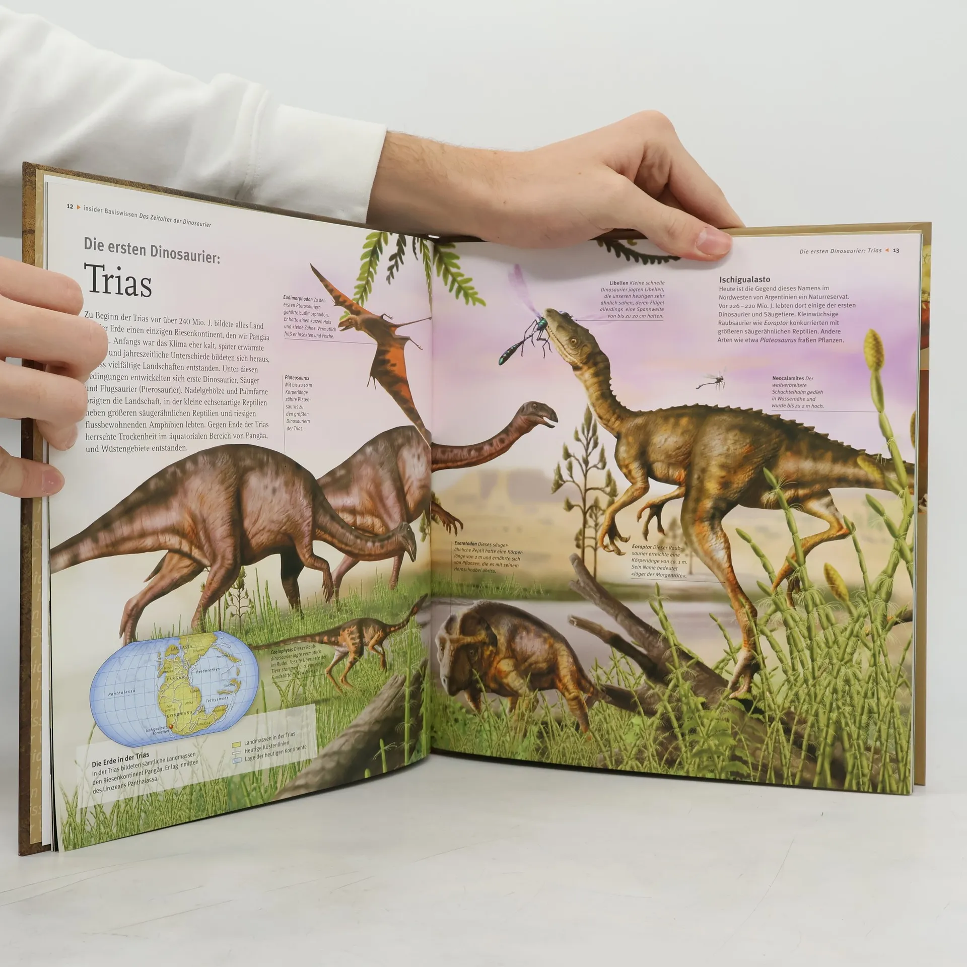 Instinktiv - das Leben der Dinosaurier. Alles über Fleisch- und Pflanzenfresser Komm mit in die Vergangenheit! Die Dinosaurier in aufwendigen 3D-Illustrationen wirken täuschend echt - so als stünde man neben ihnen. Tabellen und Grafiken sowie Querschnitte z. B. vom Knochenbau oder einem Dinosaurier-Ei vermitteln echtes Insider-Wissen! Mit Detailwissen zu elf Dinosaurierarten, allgemeinem Wissen zu Herrschaft und Untergang, zu Rekorden, Fossilien und der Arbeit der Paläontologen. Die ganze Dinosaurier-Vielfalt: Arten, lebensräume und die Arbeit der Forscher. Mit Stammbaum, Zeitleiste, Glossar und faszinierenden 3D-Bildern.