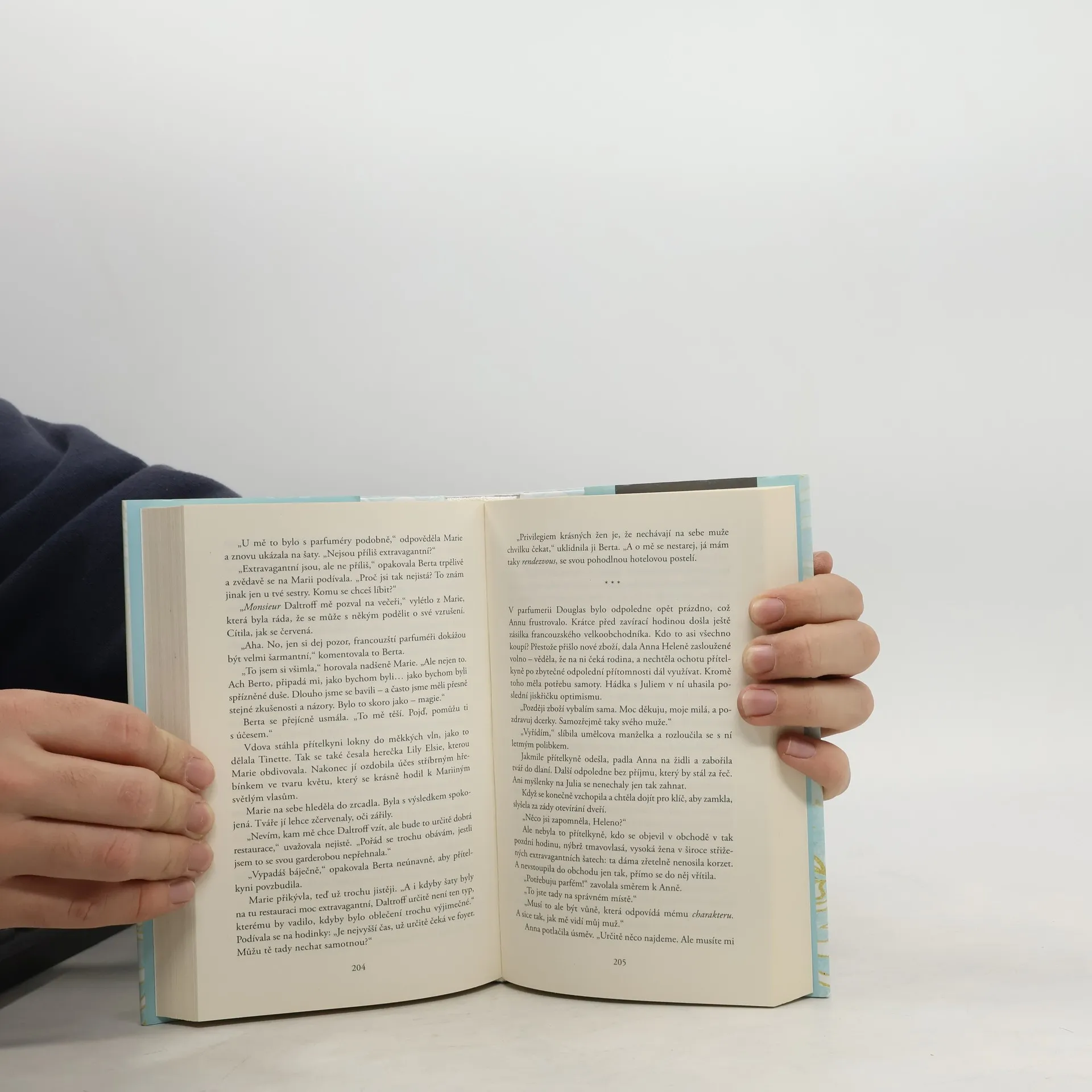 Společensko-historický román z prostředí městské smetánky na konci 19. století vypráví o touze po svobodě, ženské seberealizaci a samostatném uplatnění. Nádherné flakony a omamné vůně! Už jako malá dívka je Marie Carstensová fascinovaná parfémy hamburských dam. A tak si se sestrou Annou slíbí, že si jednou otevřou vlastní parfumerii. Získávají inspiraci v Bruselu, Paříži a ve francouzském městě vůní Grasse, a přitom se setkávají se slavnými lidmi té doby, jako jsou Coco Chanel nebo legendární parfumér François Coty. S mnoha novými nápady se vracejí do hanzovního města a začínají plné nadšení pracovat na otevření svého obchodu Douglas v srdci Hamburku. Nakladatelská anotace.