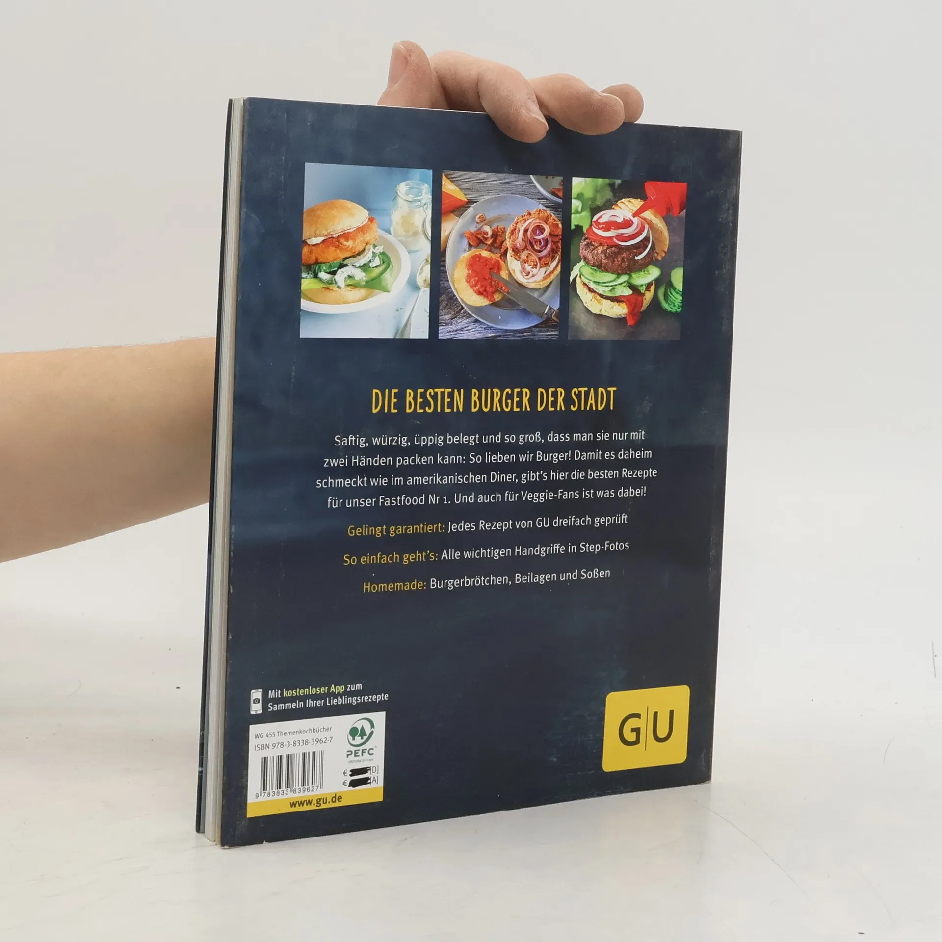 Die besten Burger der Stadt gibt’s jetzt zu Hause!Früher war ein Burger nur ein Burger, aber mittlerweile hat sich der saftige Hochstapler zum echten Allrounder entwickelt. Zwischen die Brötchenhälften kann man alles packen, worauf man Lust und Laune hat: Erlaubt ist, was schmeckt - und am besten schmeckt es selbst gemacht! Sie haben Hunger auf neue Ideen für Ihr Lieblings-Fastfood? Dann kommt der GU-Küchenratgeber Burger gerade recht. Ob Crispy-Chicken-Burger, Sonntags-Burger mit Kasseler oder Seelachs-Burger mit Gurkensalat - da läuft einem schon beim Blättern das Wasser im Mund zusammen. Zubereitet werden die Pattys in der Pfanne, im Ofen oder auf dem Grill, und das Beste: Auch das Brötchen, sonst nur labbrige Fertigware, wird selbst gemacht. Dazu gibt es würzige Saucen und knusprige Fritten oder Coleslaw. Vegetarier kommen beim Mexicana-Burger ins Schwärmen, und mit Entenbrust und Cranberry-Chutney wird der Burger sogar als Weihnachtsessen salonfähig. Und dann sollte man ihn auch mal ganz stilvoll mit Messer und Gabel essen. Das steckt im Buch: Grundrezept Burger-BrötchenJetzt wird's heiß: Grillen, braten, backen Mit FleischMit Fisch und GeflügelVegetarisch und vegan Burger im BauGeschmack on top: BurgersaucenLeckeres dazu: Coleslaw, Fritten & Co.