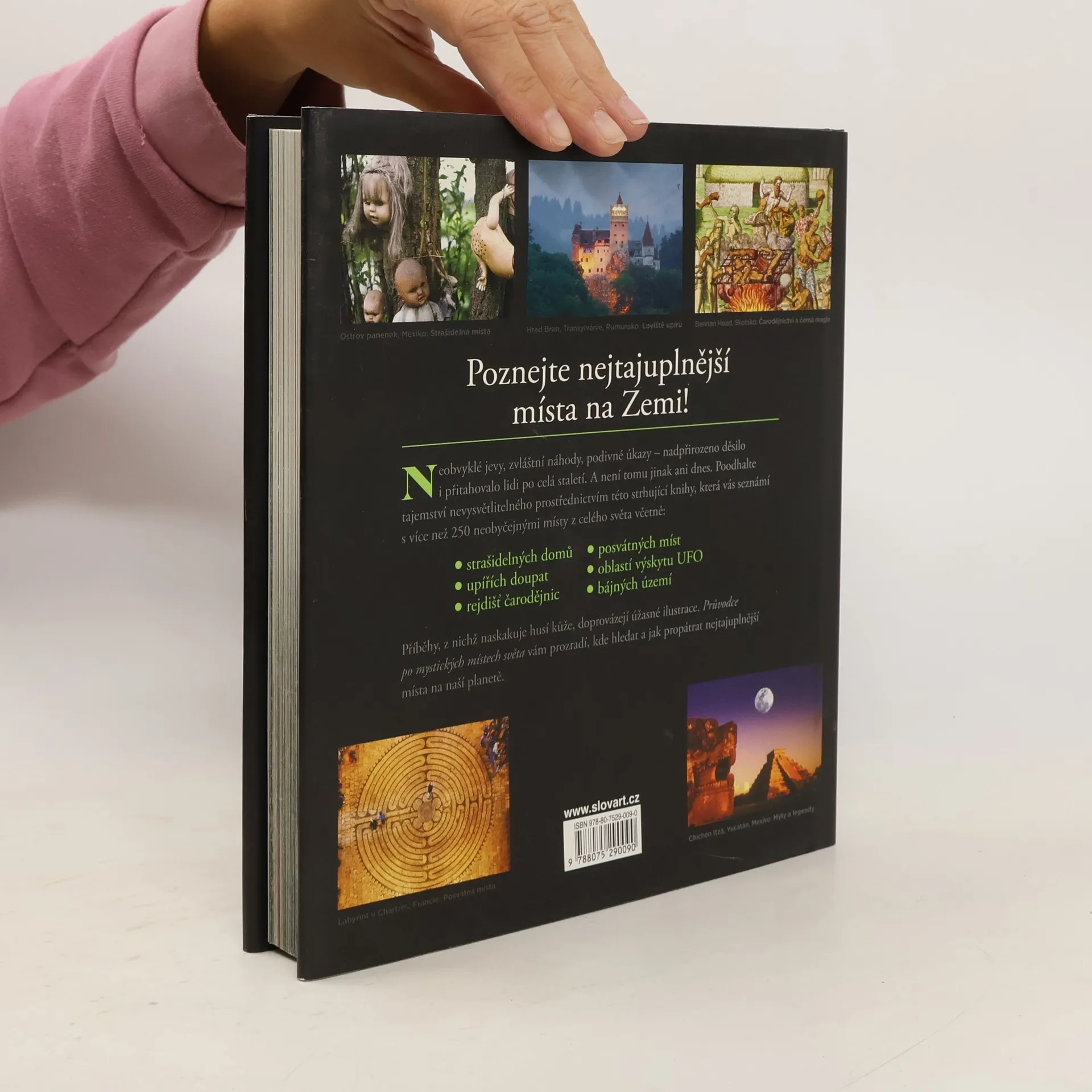 Véce než 250 tajuplných míst na celé zemi. Čarodějnice a démoni, duchové a upíři, mimozemšťané a kněžky voodoo... od tajuplného přes strašidelné až k děsivému; známky nadpřirozeného naháněly hrůzu - a fascinovaly - lidi po staletí. O mnohých z nejtajuplnějších záhad na světě vypráví tato neobyčejná kniha plná strašidelných hradů, tajných úkrytů a jiných záhadných zajímavostí. Čtenáři v ní zjistí, že upíři pocházejí nejen z Rumunska, ale i z Řecka a z Filipín. Poznají zástupy duchů, kteří prý prodlévají na osiřelých bojištích, v opuštěných ústavech pro choromyslné, na hřbitovech a dalších místech, z nichž člověka mrazí. Posoudí možnost setkání s mimozemšťany. Navštíví tak zvláštní místa, jako je Uluru v nitru Austrálie nebo Chichén Itzá na mexickém Yucatánu. Vůbec první průvodce po mystických místech světa z Nakladatelství Slovart je bohatě ilustrovaný a seznámí čtenáře s více než 250 neobyčejnými místy z celého světa. U každého z nich pak najdou informace o tom, kdy je nejvhodnější dané místo navštívit, aby si mohli odnést co nejzajímavější zážitky. Tato kniha každého dozajista přesvědčí, že tam venku může být víc, než se zdá.